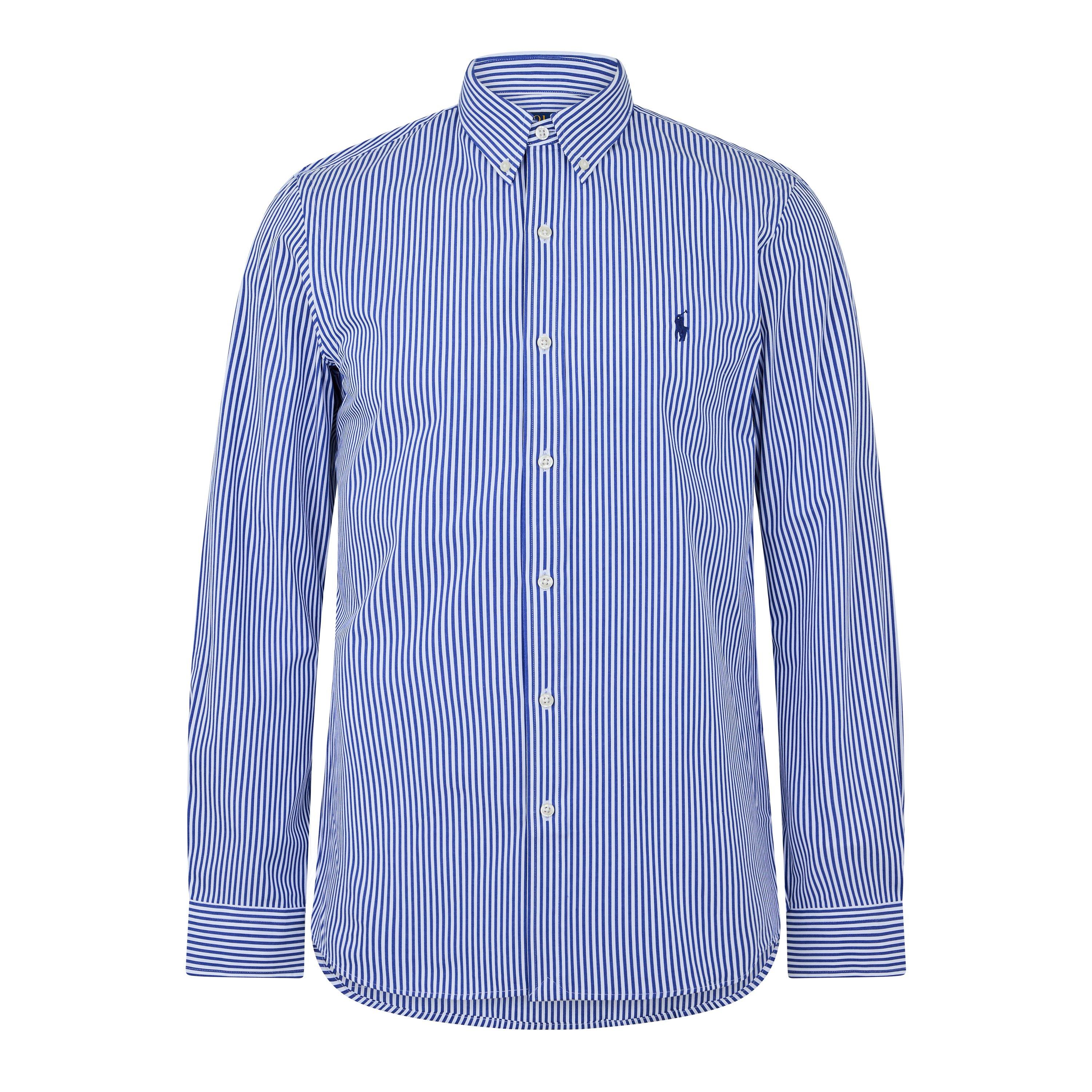 Update your smart-casual collection with the Stripe Poplin Slim Fit Shirt from Polo Ralph Lauren. The signature Polo logo embroidery on the chest adds luxury to your ensemble. Whether it's a dinner with friends or date night, this shirt will help exude confidence.