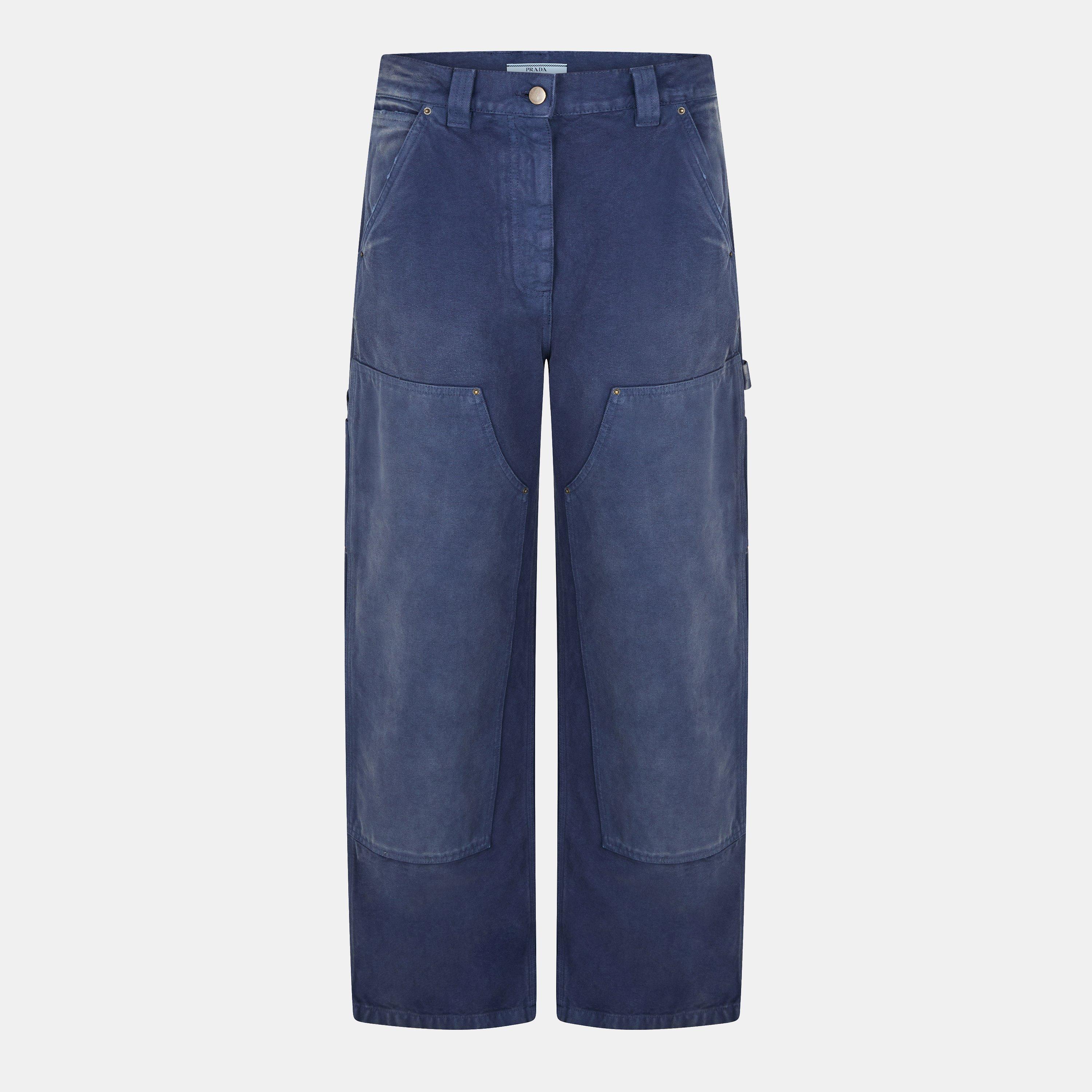 Elevate your everyday wardrobe with Prada's Canvas Trousers. Adorned with the signature triangle logo patch to the rear showcasing a bold and iconic finish. From laid-back weekends to outings with friends, these bottoms are a staple piece.