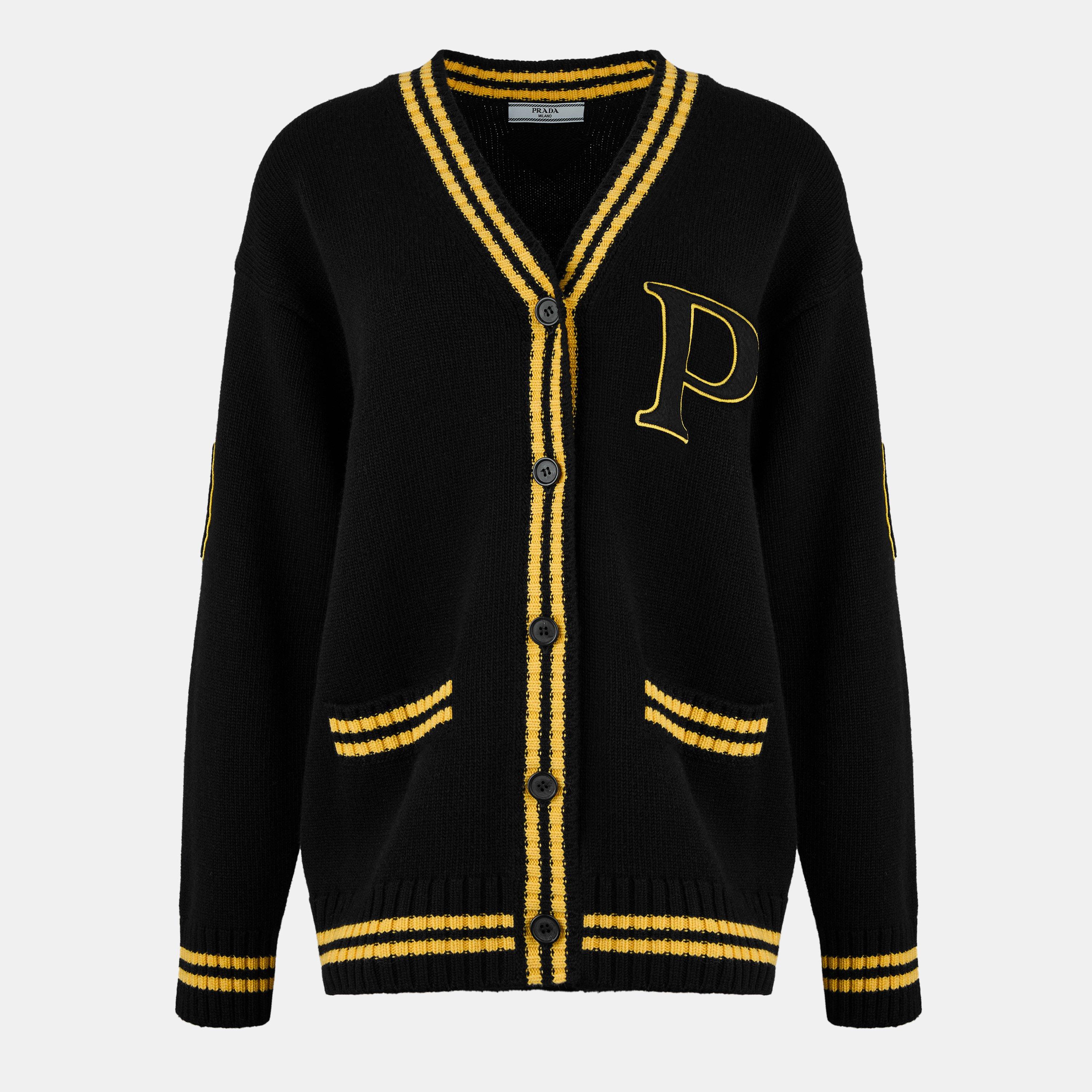 Embrace luxury with the Prada Cashmere Varsity Cardigan, a true staple for those who seek comfort without compromising style. Whether it's a casual weekend gathering or a cosy evening out, this cardigan effortlessly blends laid-back ease with high-end fashion.