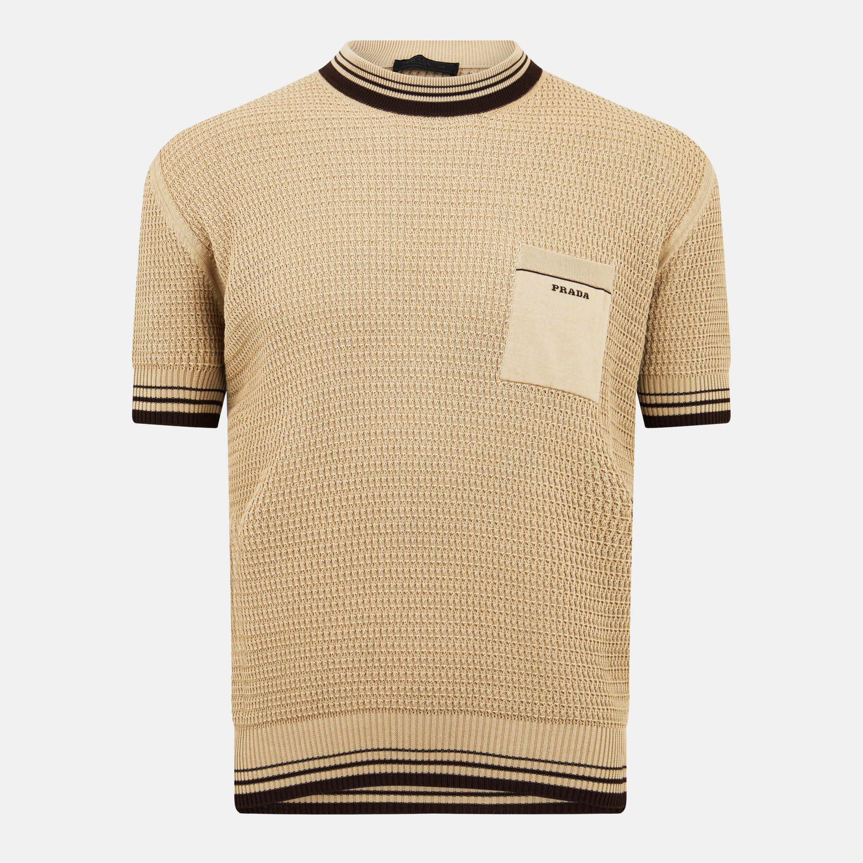 Designed with an attractive ribbed crew neckline and short sleeves, this Prada creation adapts easily to any event, be it a casual or formal gathering. Its ribbed striped trims add the perfect finishing touches to the sweater, while the neutral colouring ensures its versatility, allowing it to be seamlessly integrated into any wardrobe. Whether you are exploring the streets of a new city or meeting friends for a stylish dinner, the Cotton Crew Neck Sweater is the perfect companion for any occasion.
