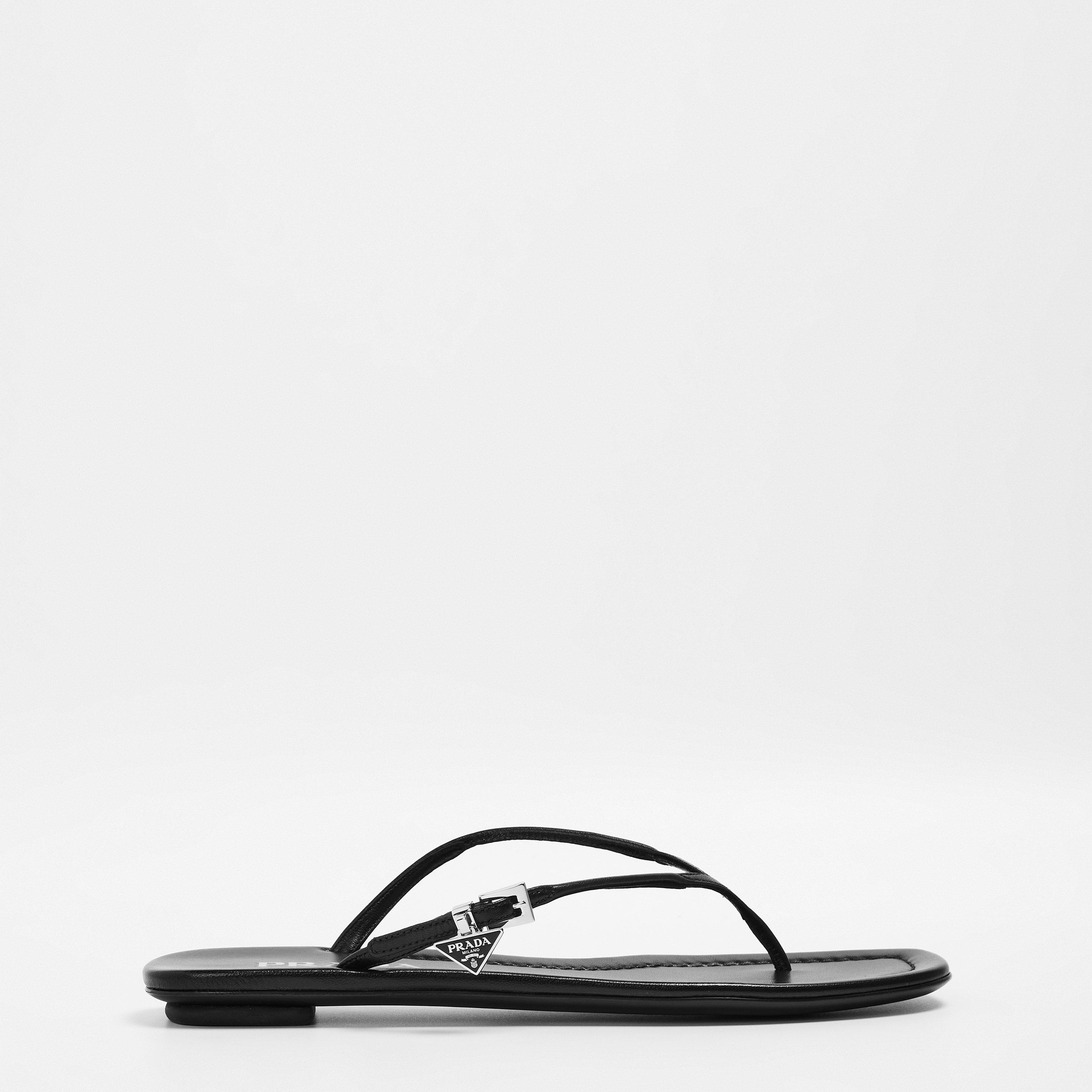 Sleek, minimal, and effortlessly chic, the Prada Leather Thong Sandals bring understated luxury to warm-weather dressing. The logo plaque adds a signature touch to the design, while the durable rubber sole ensures you stay comfortable. Perfect for resort getaways, summer brunches, or polished day-to-night transitions, these sandals are a refined essential for the modern wardrobe.