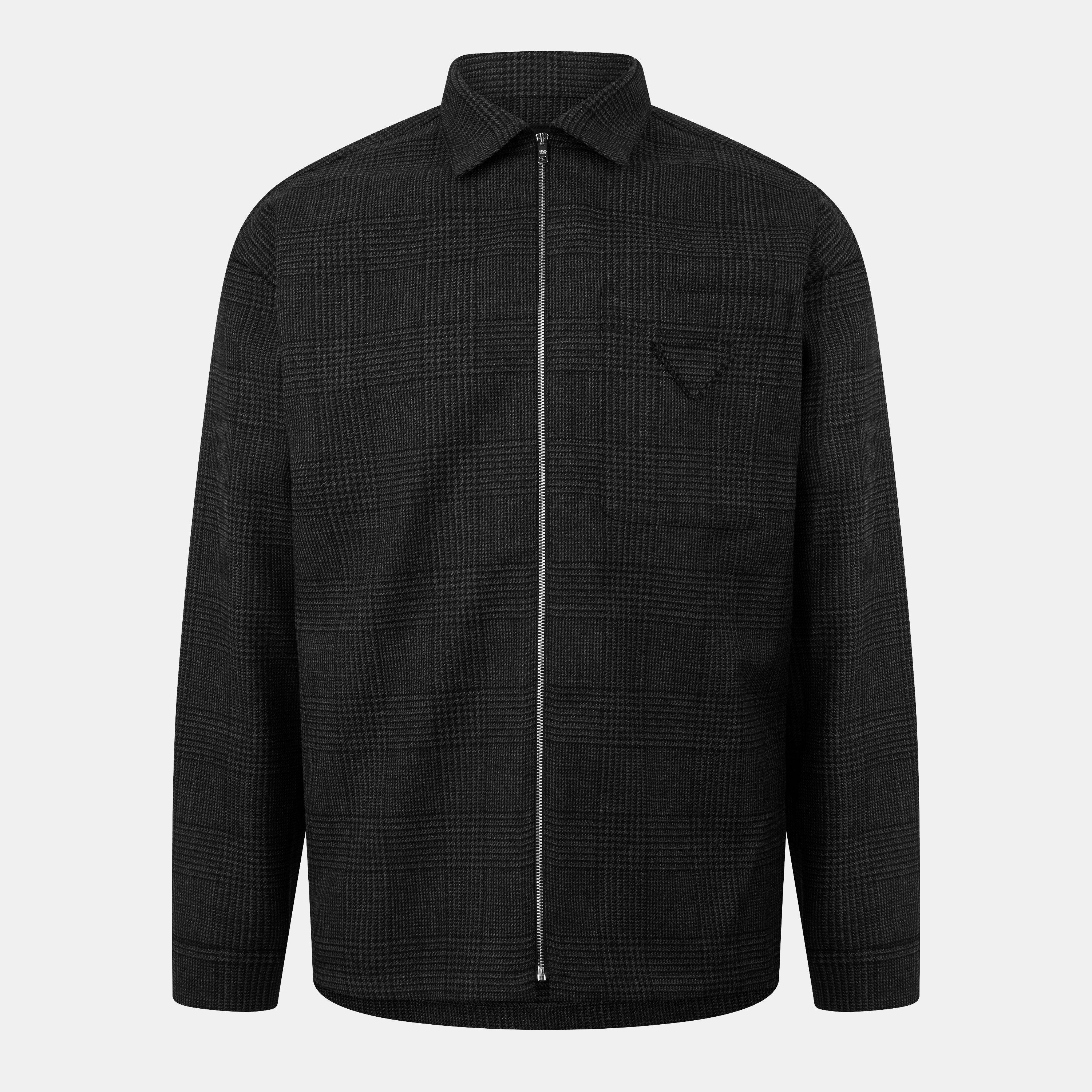 Prada's Check Wool Long Sleeve Overshirt showcases a classic style with its check pattern and the triangle detail at the chest pocket. Made with quality materials, this regular fit piece offers luxurious comfort and fashionable design elements.