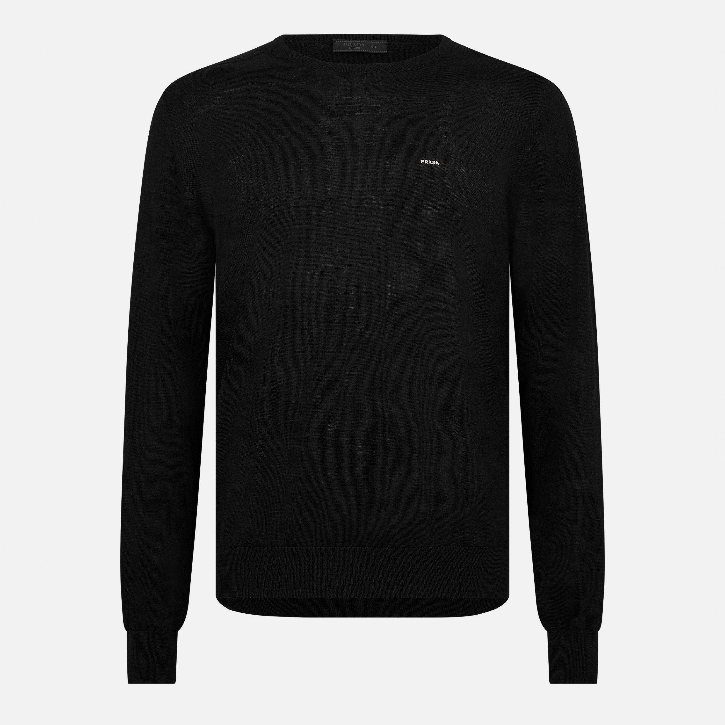 The Prada Fine Knit Crew-Neck Jumper features a tailored fit that maintains a streamlined profile. The design stays neat without excess fabric.