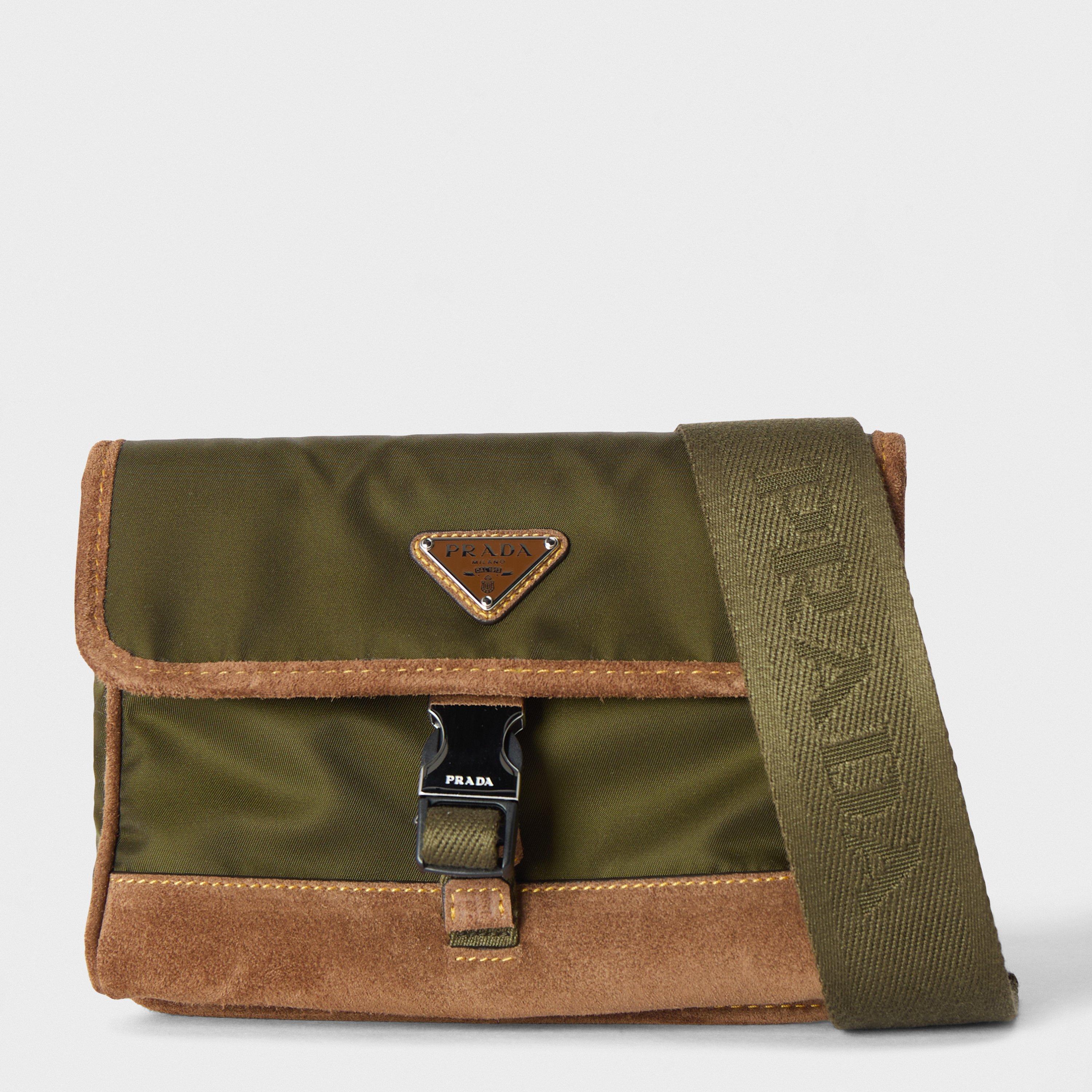 Prada's Men's Designer Crossbody Bags offer lightweight durability with the house's minimalist aesthetic. The sleek design features secure fastenings and adjustable straps for multiple wearing options.