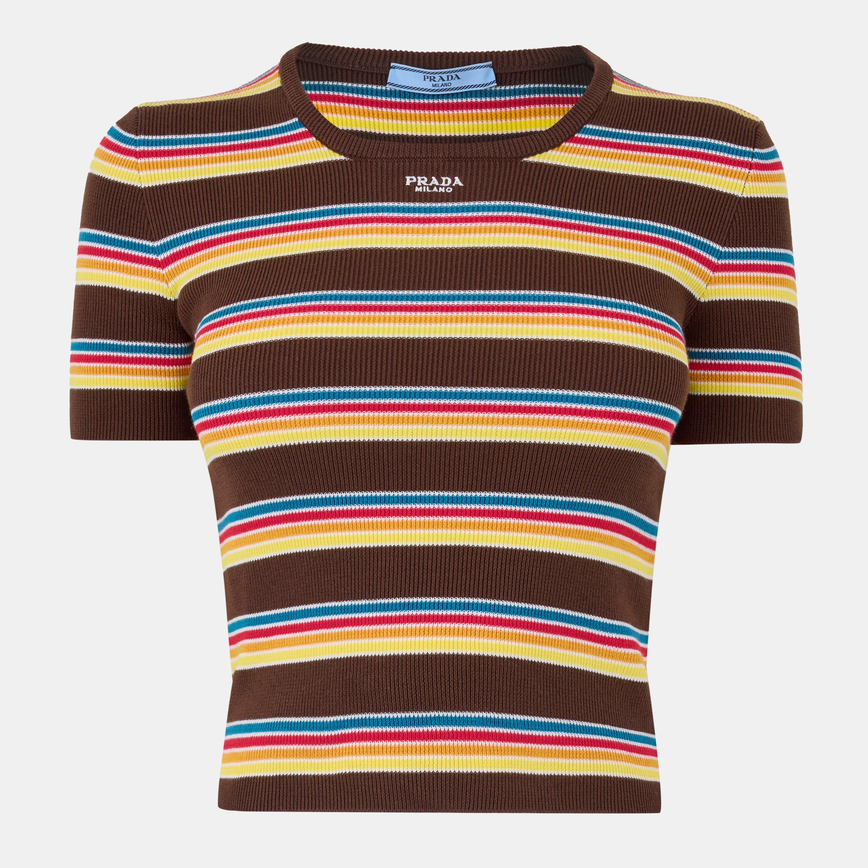 Prada's Stripe Crew-Neck Jumper delivers fashion knitwear with clean lines and classic nautical inspiration. The design features a structured crew-neckline and precise stripe detailing.