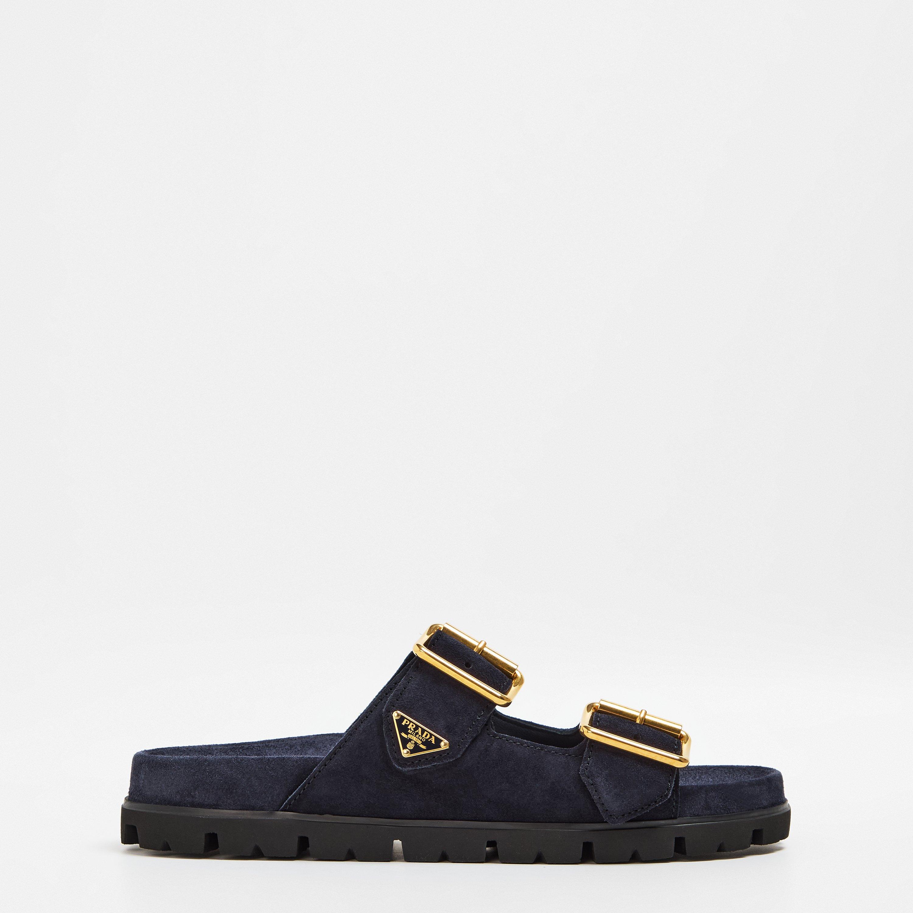 Understated elegance meets Italian craftsmanship in Prada’s Suede Strap Sandals. The subtle gold-tone logo detailing adds a touch of quiet luxury, making them a versatile staple in any wardrobe. Whether you are going to garden parties or alfresco dinners, these sandals give you exceptional style and comfort.