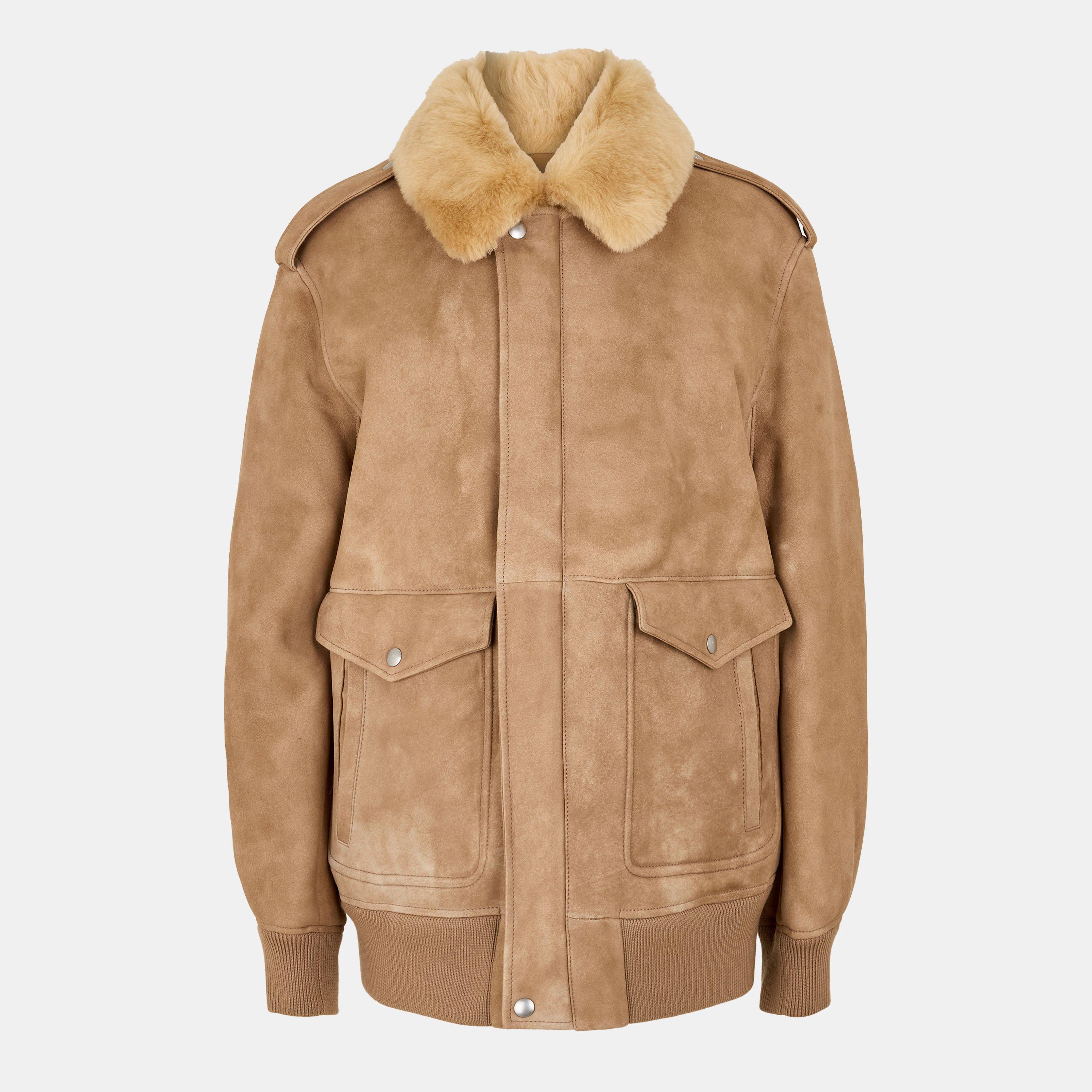 Prada's Women's Shearling Jacket balances soft texture with minimalist design. Natural shearling provides warmth while clean lines maintain the brand's aesthetic. The luxurious design offers many styling options with enduring appeal.