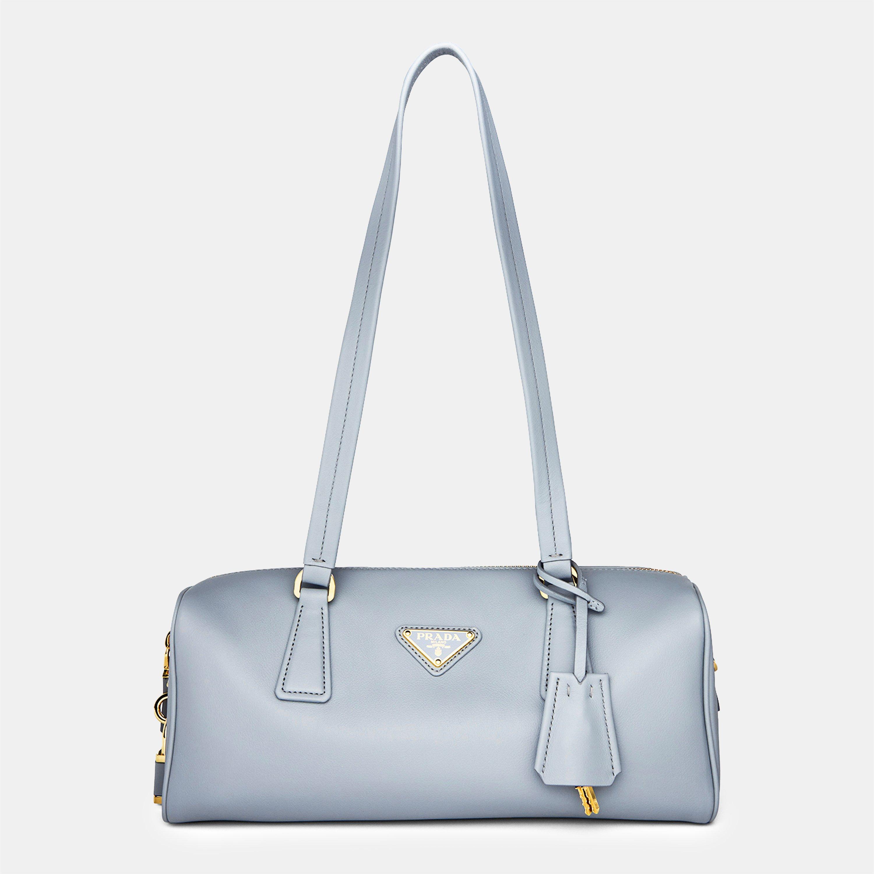 Prada's Medium Leather Shoulder Bag offers a blend of style and functionality. This luxury women's purse showcases a minimalist black design made from premium calf leather and metallic fibre, perfect for dinner dates or special events. The spacious interior with organised compartments keeps essentials perfectly arranged.