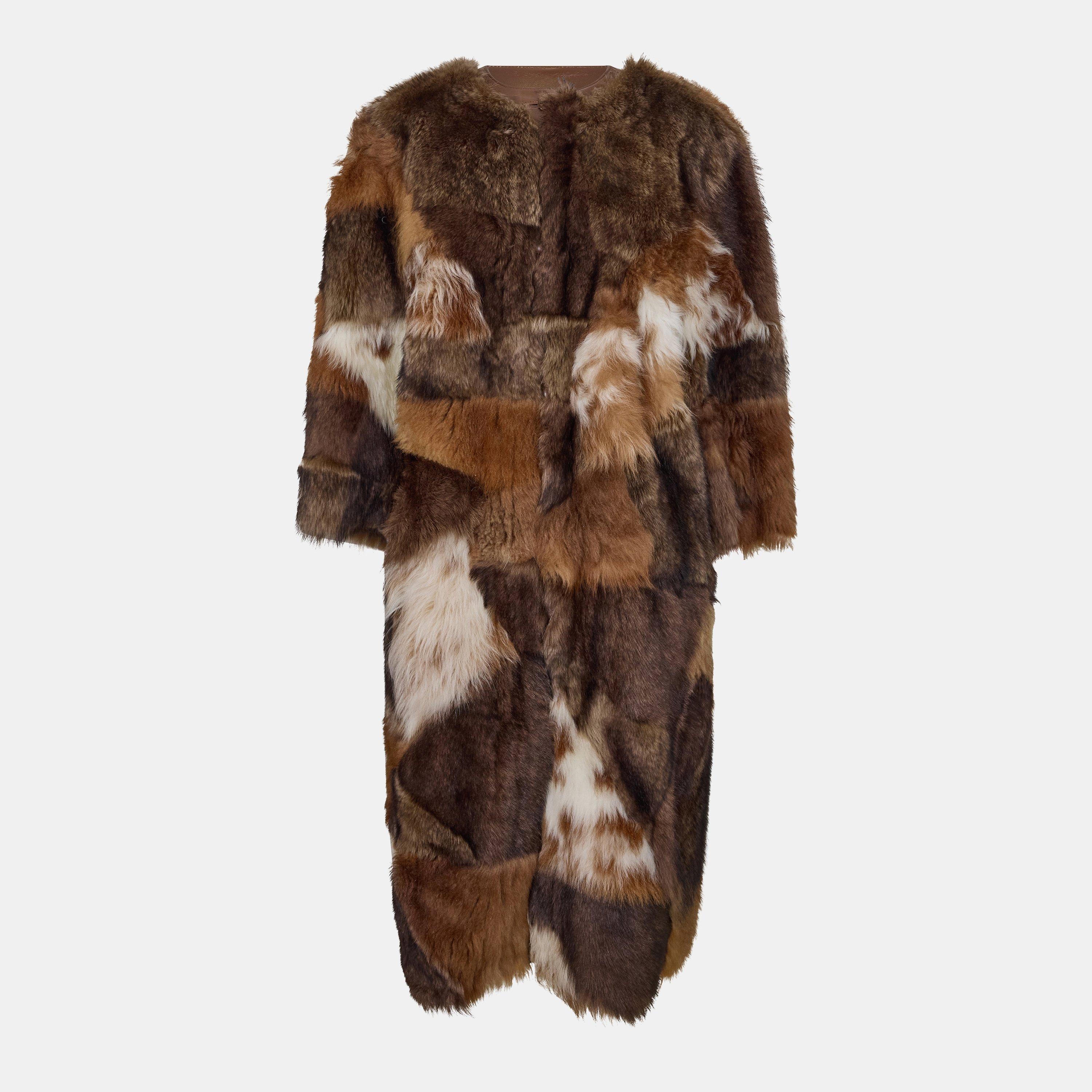 Wrap up in this designer Prada Patchwork Textured Insulated Shearling Jacket. Featuring contrasting textured panels that create visual dimension, this contemporary piece merges high-fashion aesthetic with practical warmth for the cooler seasons.