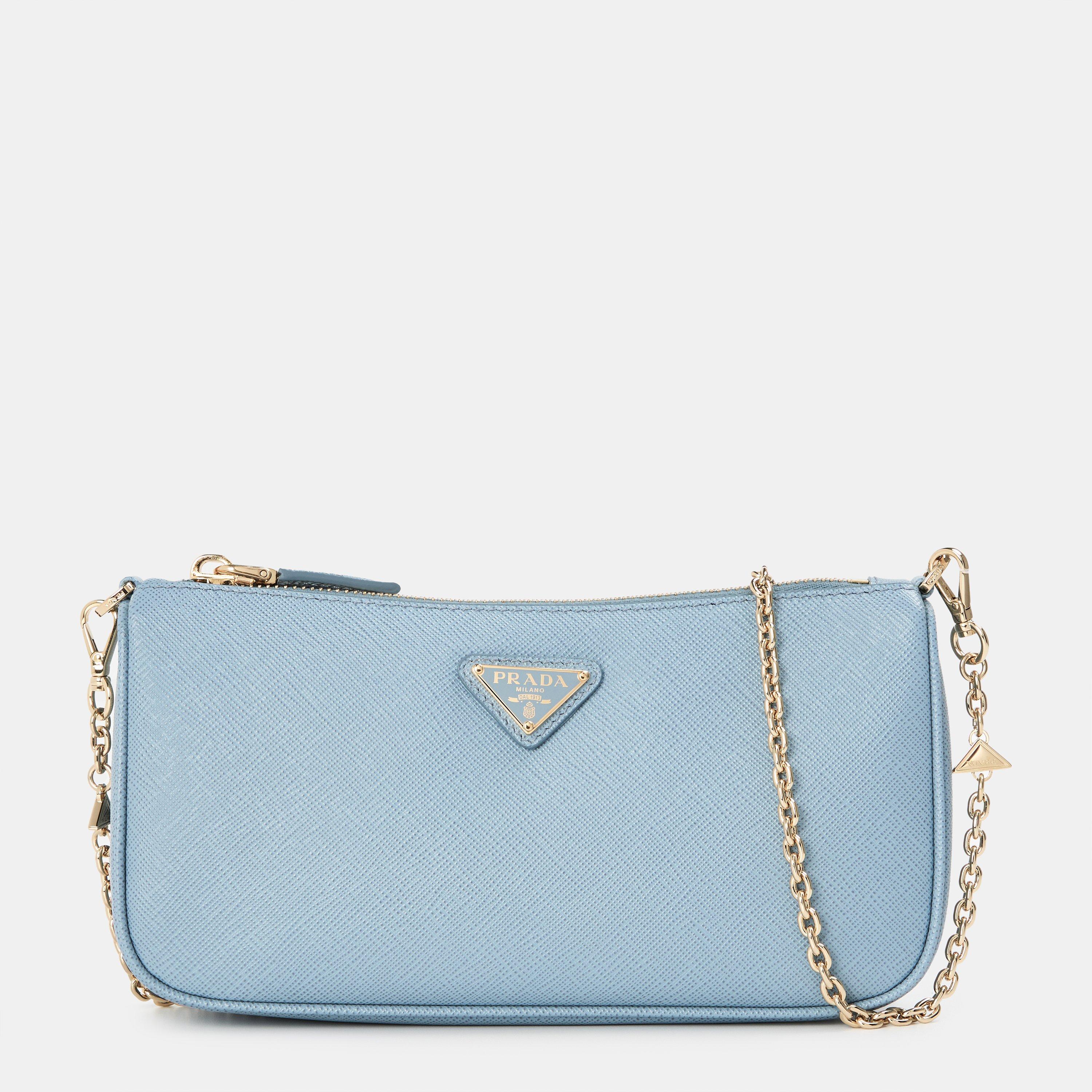 Prada's Small Leather Shoulder Bag offers a refined addition to your women's handbag collection. This sleek, compact purse combines the brand's signature minimalist design with practical functionality, making it ideal for dinner outings or everyday errands.