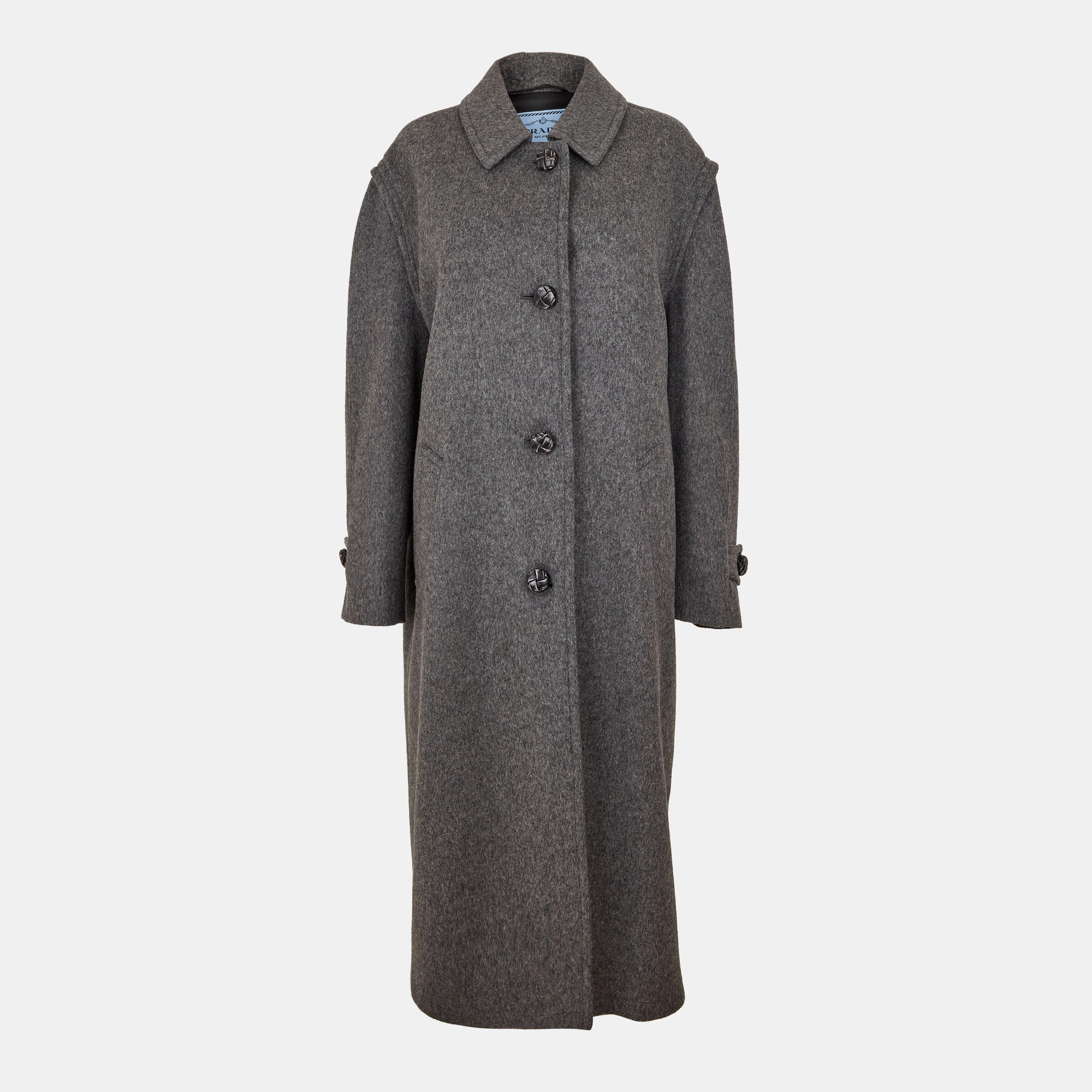 The Prada Women's Structured Overcoat delivers a sharp style. With a tailored shape, this overcoat presents a smart form while maintaining Prada's minimalist aesthetic. This outerwear piece transitions seamlessly between settings.