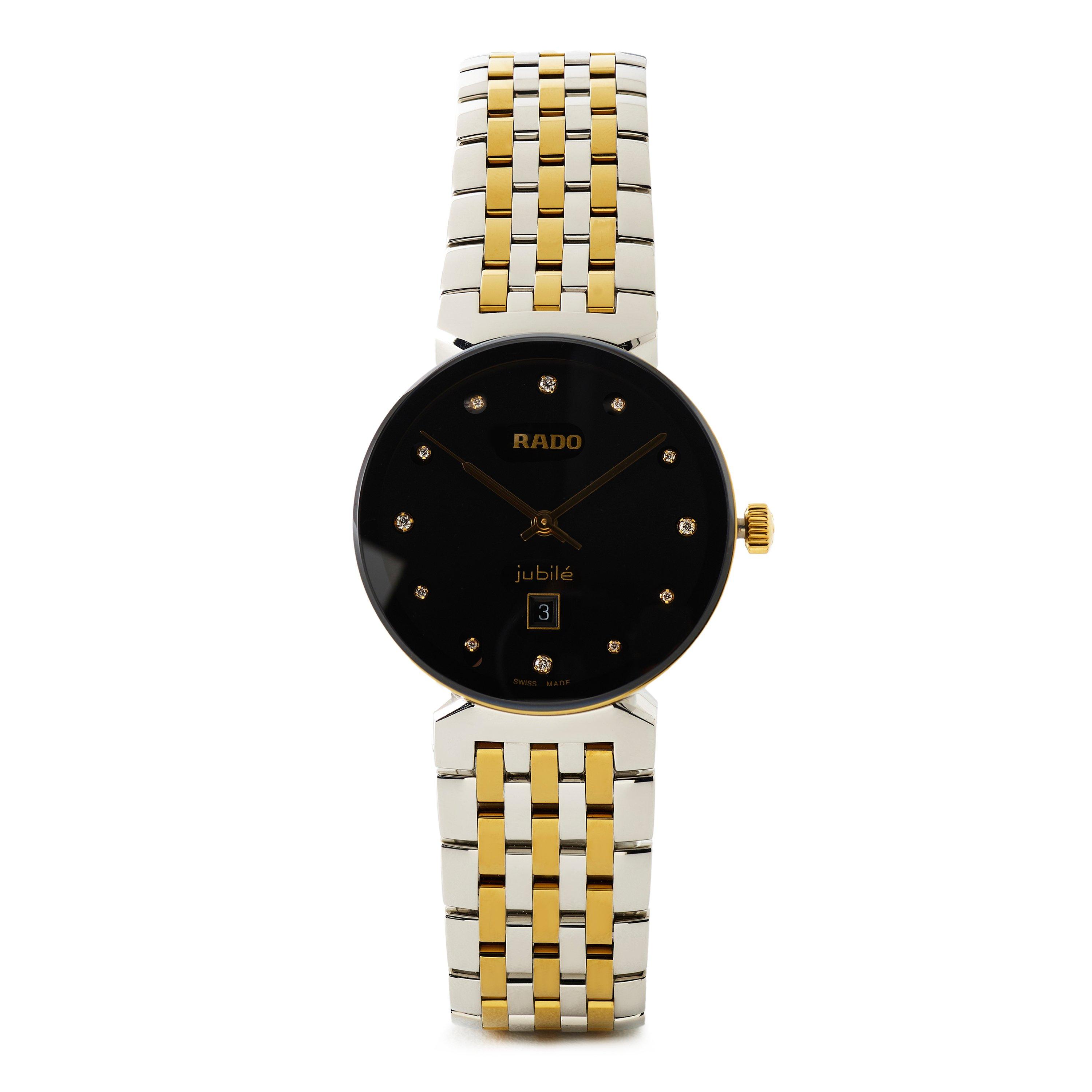Sleek lines meet precision engineering in Rado's Florence Diamonds Quartz Timepiece. Diamond hour markers decorate the analogue dial, balanced with a case design that transitions from day to night.