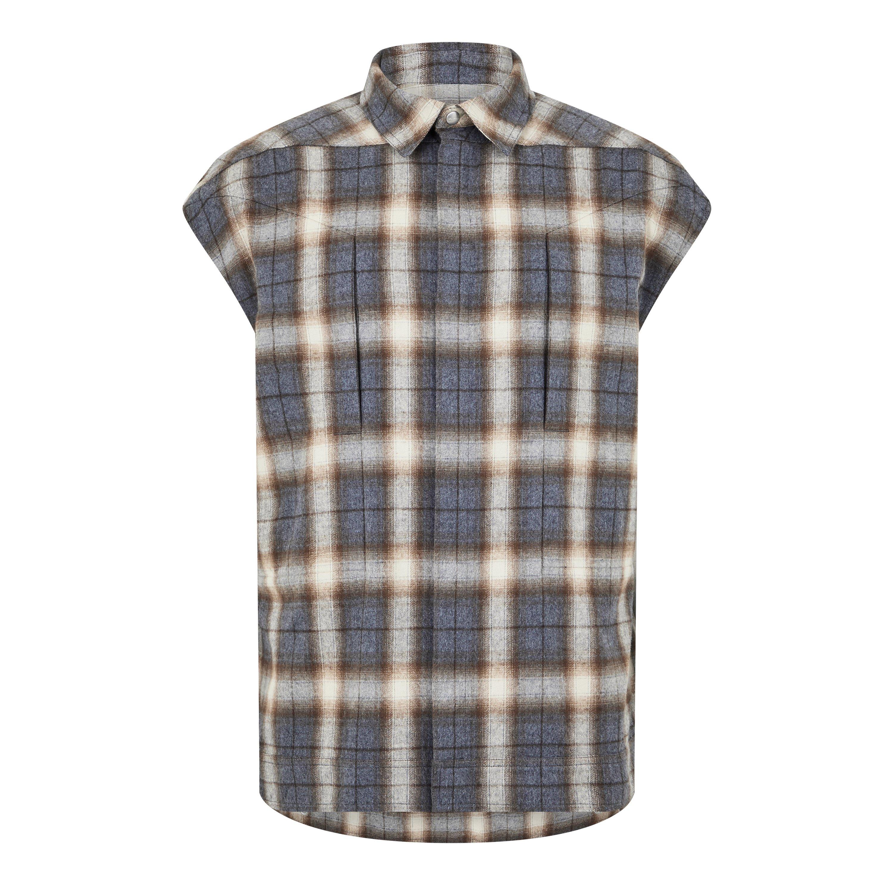 Rick Owens' Men's Sleeveless Shirt features a minimalist design with a notable shape. The piece offers clean lines and a structured form that creates a sharp profile.