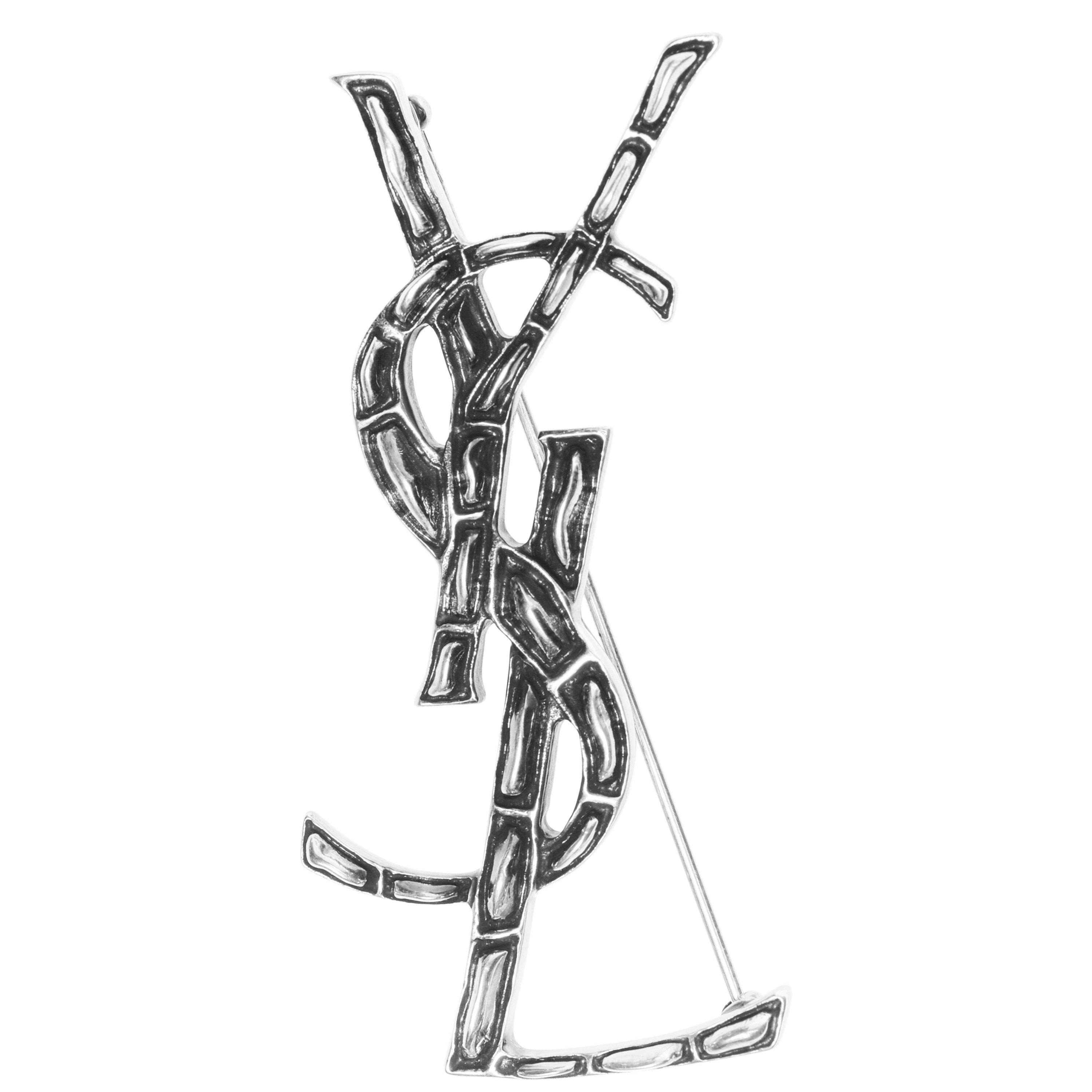 Handcrafted to perfection, each Cassandre Crocodile Brooch from Saint Laurent is a unique masterpiece that will take pride of place in your jewellery box. Mastercally fashioned in brass, the artisanal techniques used mean there will be slight colour variations, making this yours in every sense of the word. Shaped in the Cassandre emblem, YSL's most enduring and iconic motif, this ladies brooch is secured to your clothes with a safety catch closure and is engraved with the house's signature on the underside.