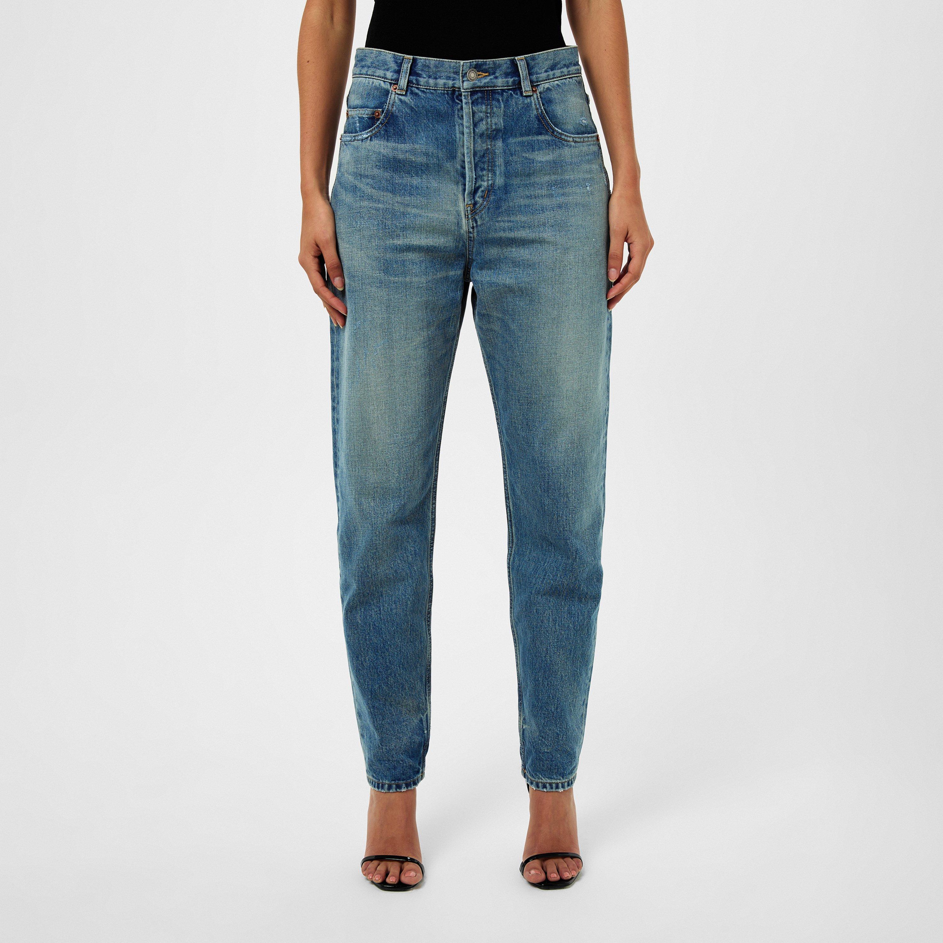 Saint Laurent presents the Faded Wide Leg Jeans, the epitome of sophistication. Adorned with a subtle logo tab at the rear creating brand recognition and a distinctive touch. From everyday wear to evening occasions, these jeans are a wardrobe staple.