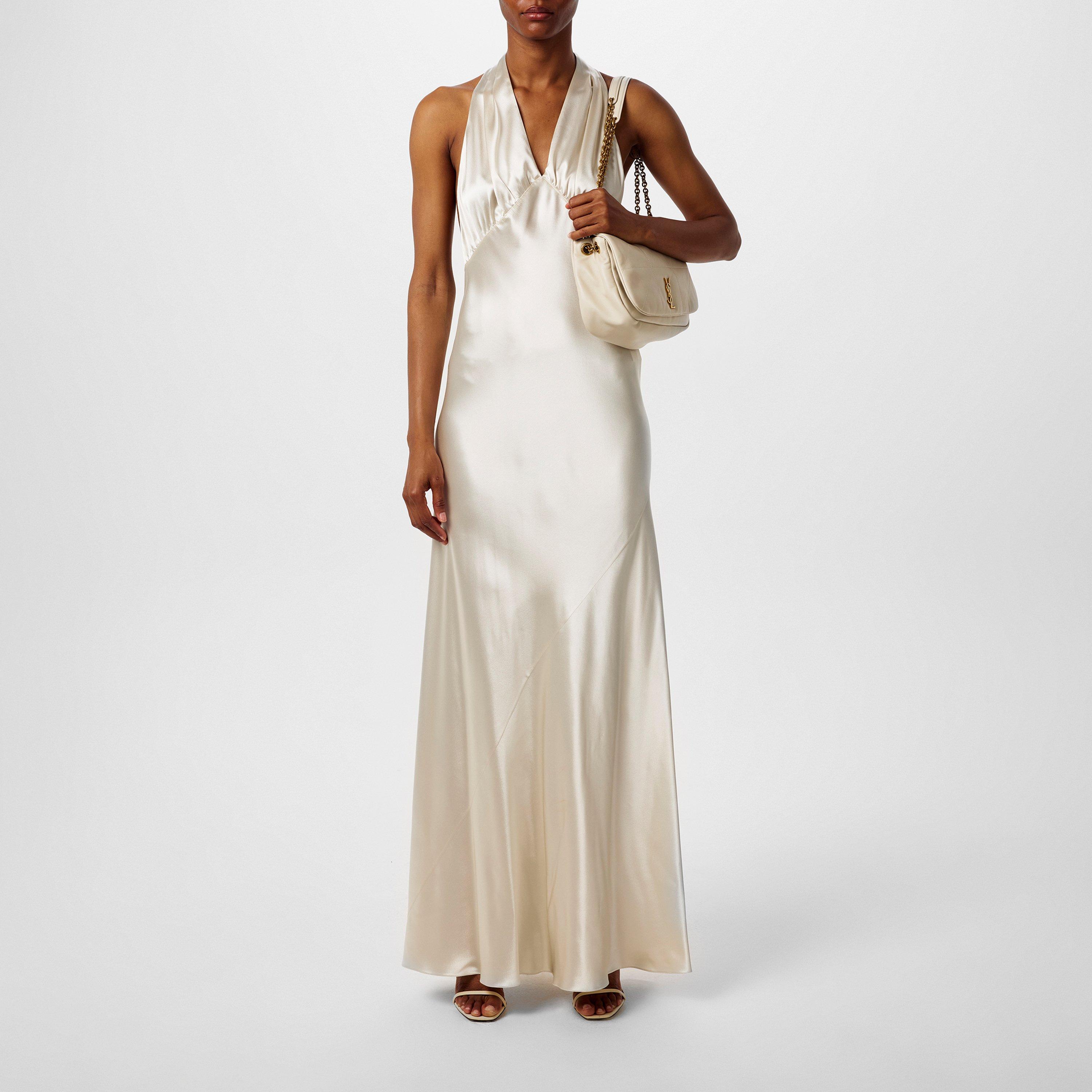 Effortlessly exude elegance in this Halterneck Satin Maxi Dress from esteemed ateliers at Saint Laurent. Captivate crowds at high-brow events with this sophisticated silhouette, boasting a chic colourway in a satin finish. Whether attending a gala or a soiree this floor length dress creates an eye-catching wear.