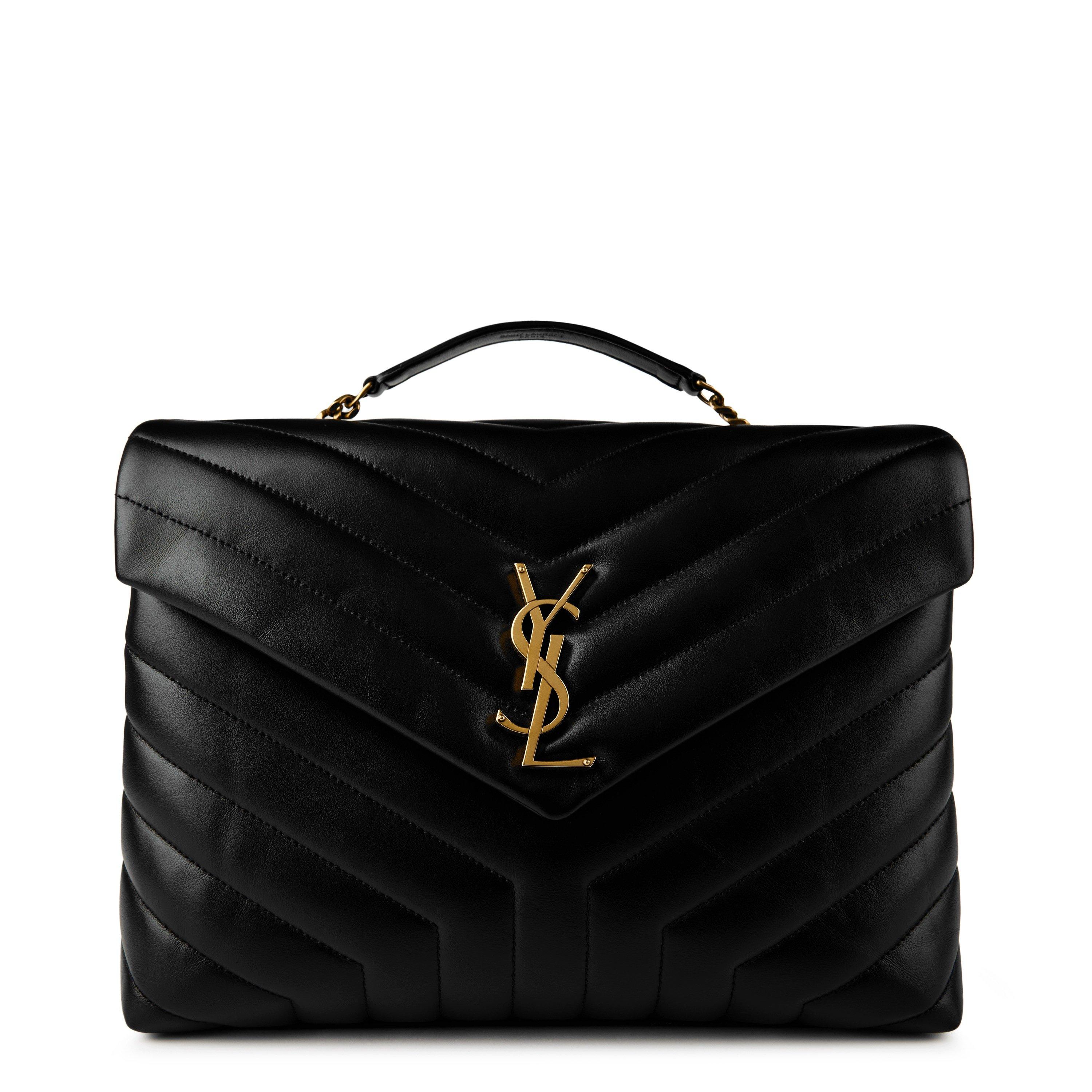 YSL's signature quilted chevron topstitching adds a distinctive and textured touch.