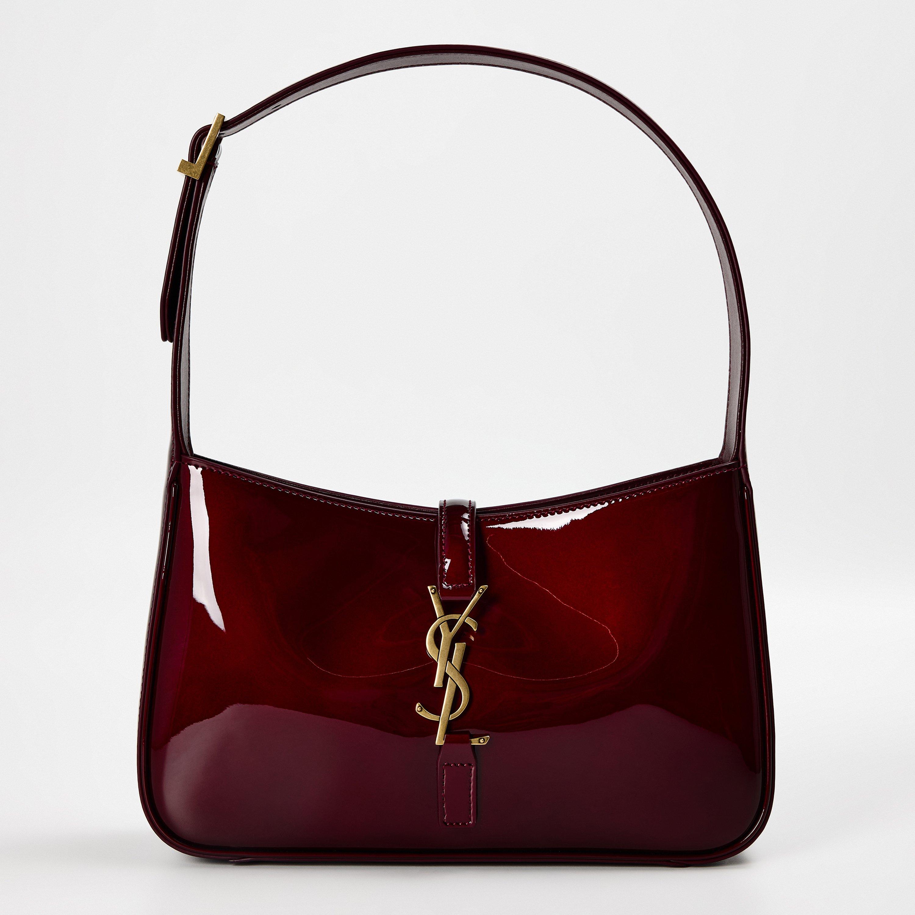 Saint Laurent's Gloss Le5A7 Hobo Bag features a curved, slouched shape designed for relaxed carrying. The hobo bag maintains a compact profile with easy access.