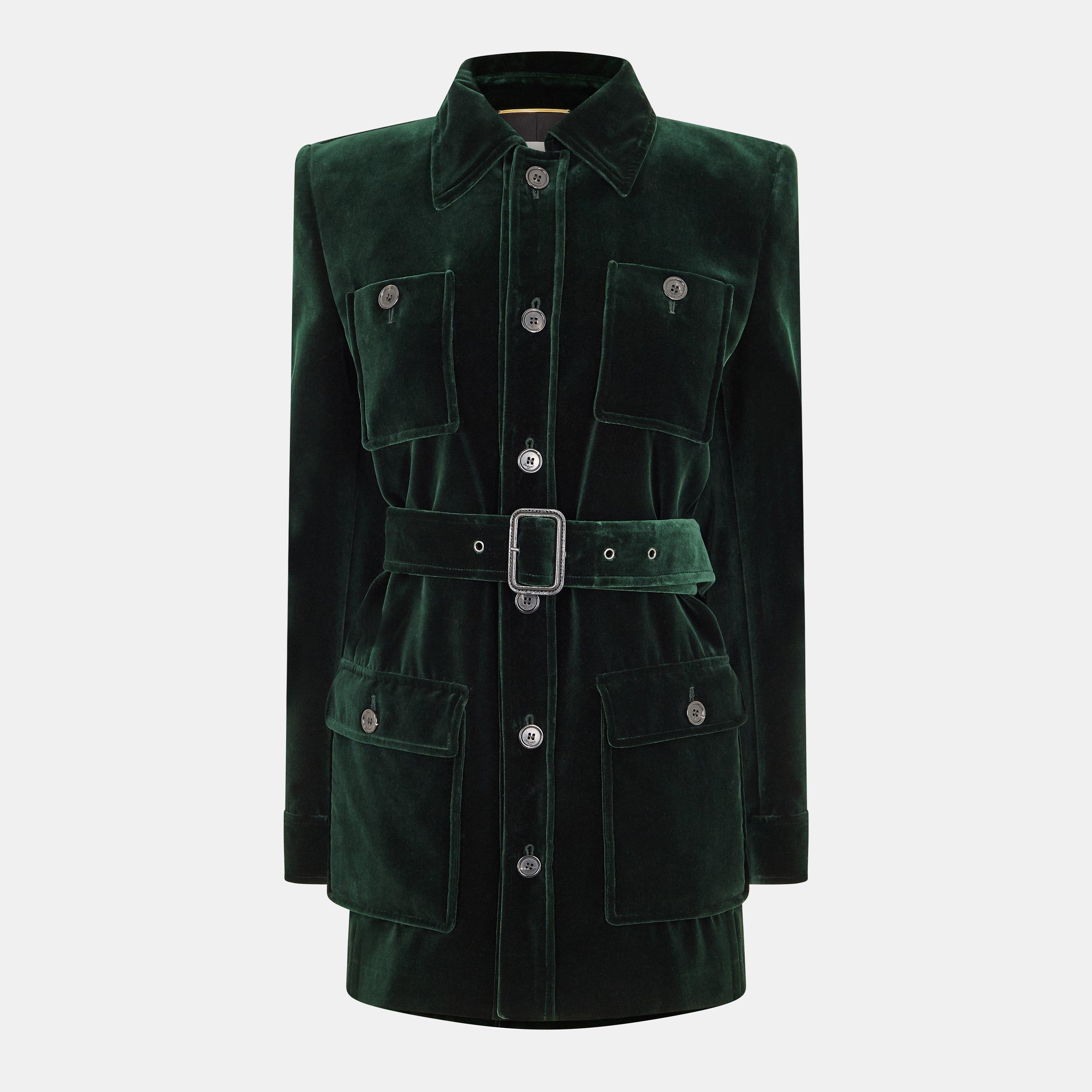 The Saint Laurent Women's Weather Resistant Tailored Fit Softshell Jacket joins design with practical functionality. This sleek outer layer features weather-resistant technical fabric in a tailored cut, offering protection against the elements while maintaining the brand's characteristic minimalist aesthetic ideal for urban environments.