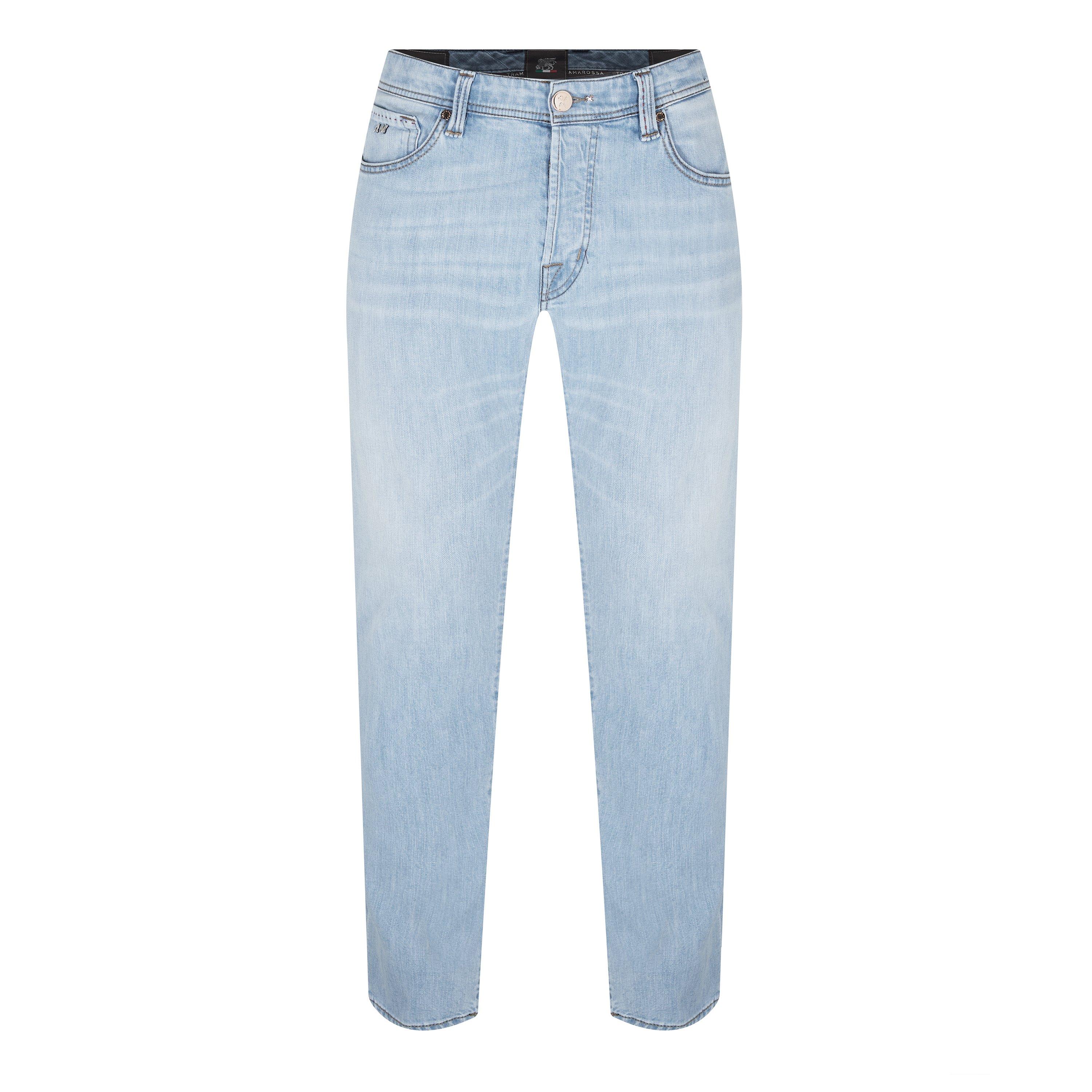 Stand out in the crowd with these Leonardo slim jeans by Sartoria Tramarossa. Artfully crafted from a premium cotton blend twill, these jeans feature a central button fly, belt loops, a classic five pocket design, metallic rivets and tobacco stitching. Decorated in a traditional light blue denim wash, the design is elevated with suede leather patch with the Tramarossa branding proudly displayed upon it. Fabric: 98% cotton, 2% elastane. Machine washable at 30 degrees - always refer to and follow care instructions for best wear.