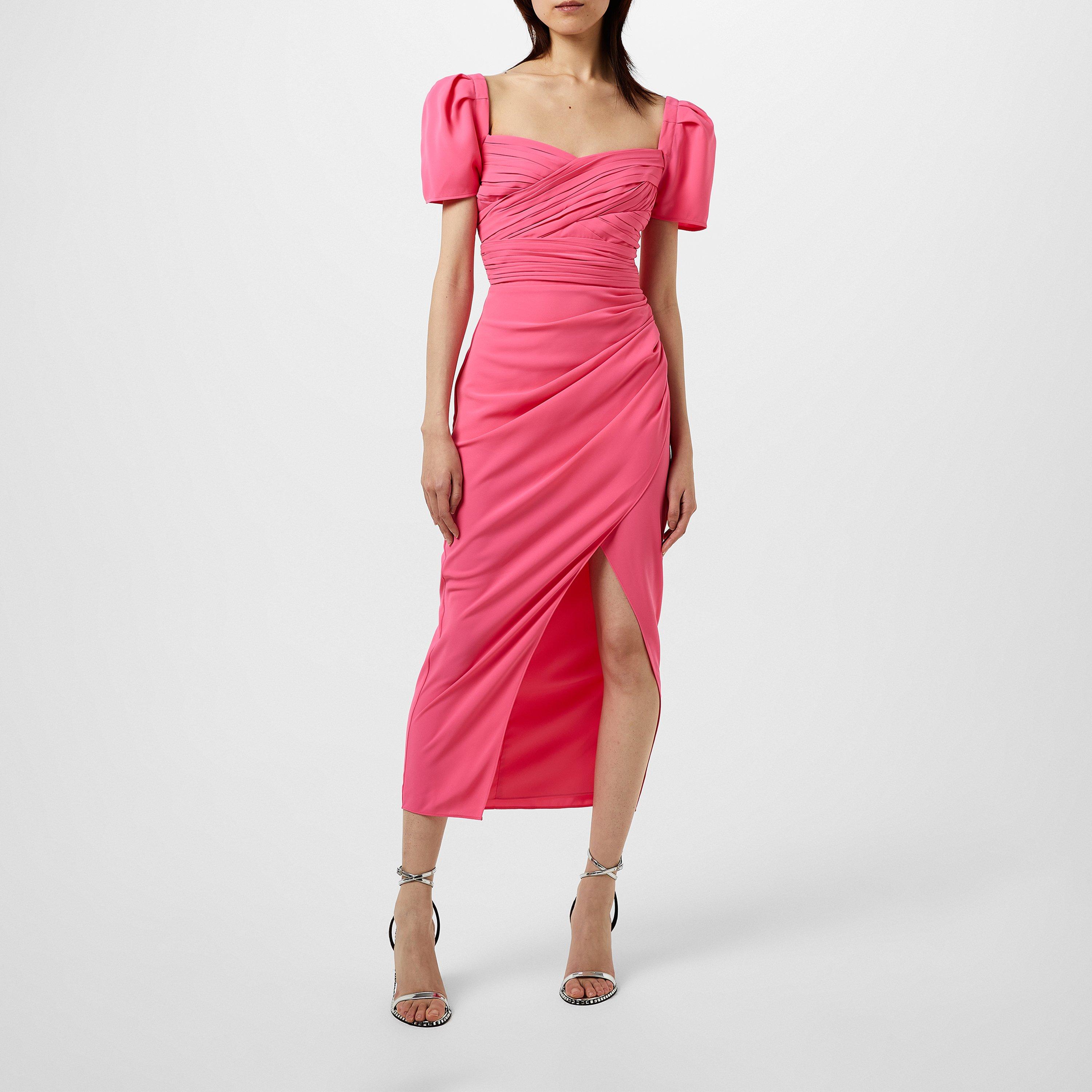 Crafted from luxurious polyester crepe, this dress embraces the wearer in high comfort and refinement. The fully lined construction ensures a flawless fit, while the rear zip fastening allows for effortless dressing. The sweetheart neckline with a fitted bodice accentuates the feminine silhouette, while the short puff sleeves with slight pleat detailing add a whimsical touch. The gathered waist with a slit detail enhances the dress's allure, while the midi length exudes elegance and grace. Whether attending a glamorous gala or celebrating a special occasion like a wedding, the Iris Midi Dress is the perfect choice for making a memorable entrance. With its exceptional attention to detail and luxurious materials, this dress not only embodies sophistication and style but also empowers the wearer to feel confident and radiant. Care: Dry clean only.