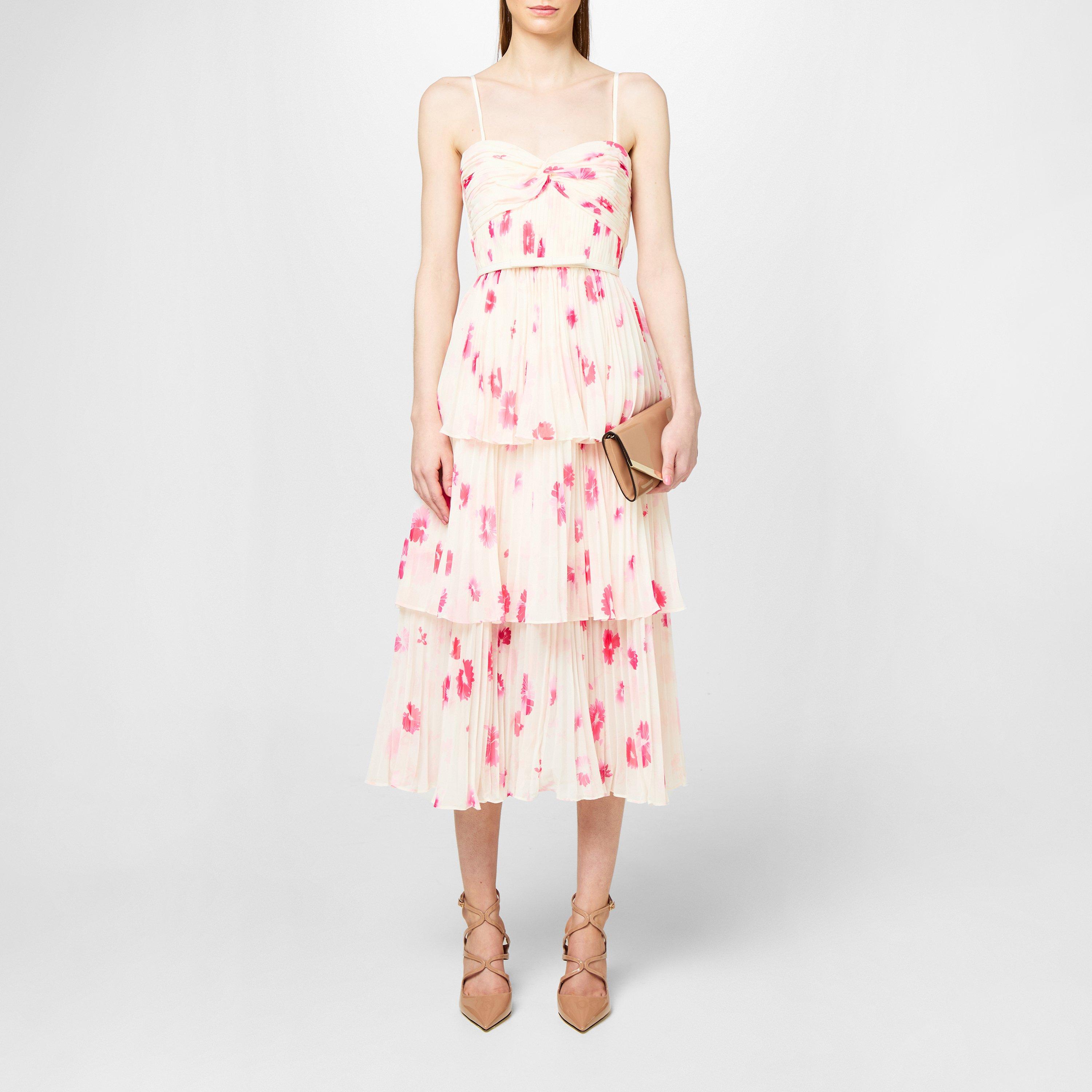 Self-Portrait presents the captivating Printed Tiered Midi Dress: perfect for any occasion that calls for a touch of sophistication. Intricately crafted from lightweight polyester chiffon and tailored in a flattering fitted style, this layered dress showcases a charming sweetheart neckline complete with adjustable shoulder straps and a convenient rear zip closure. Fully lined and incorporating an internal corset for a cinched look, a removable belt around the waist leads to the tiered skirt that gracefully cascades to beneath the knee.