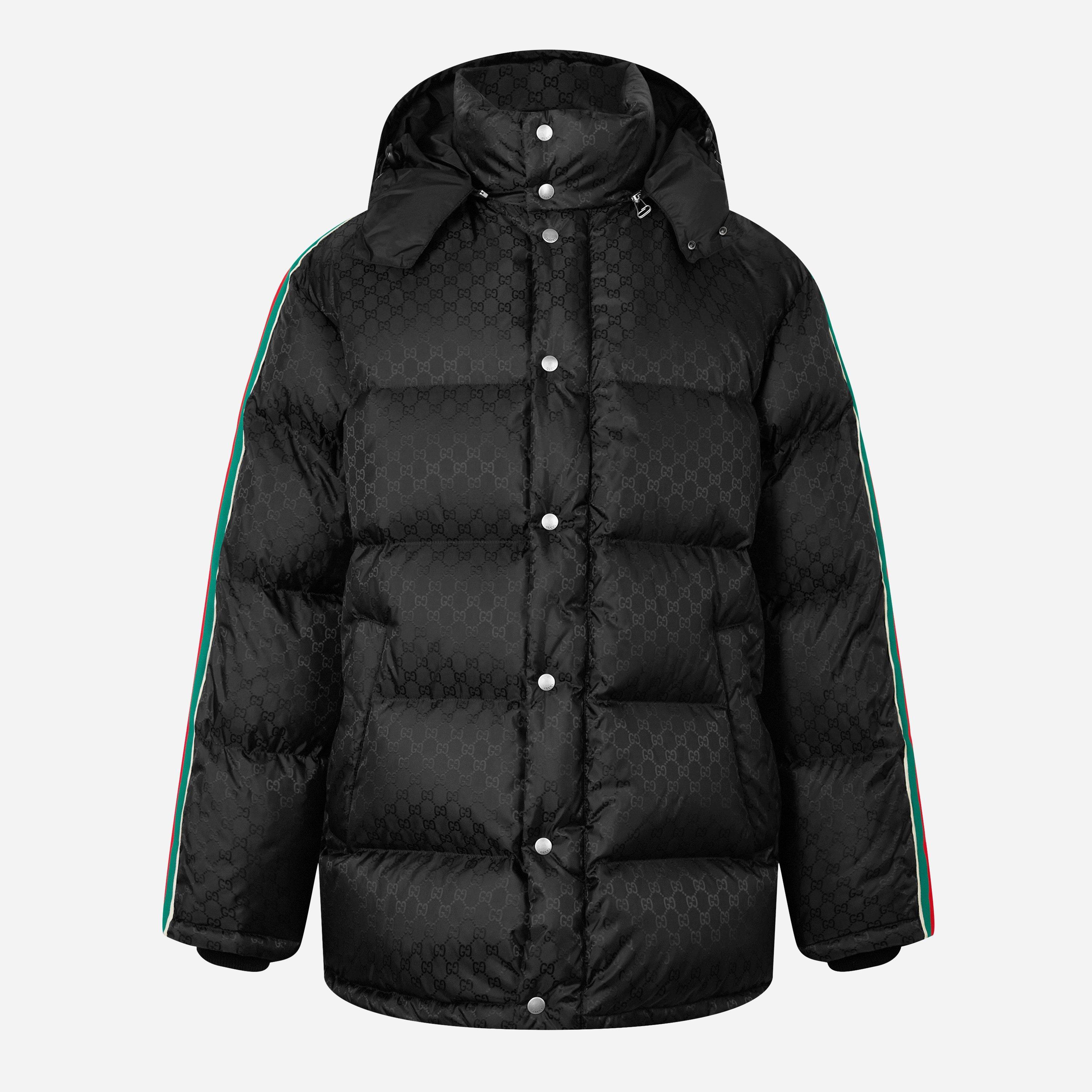 Men's GG Nylon Jacquard Web Long Sleeve Short Puffer Jacket