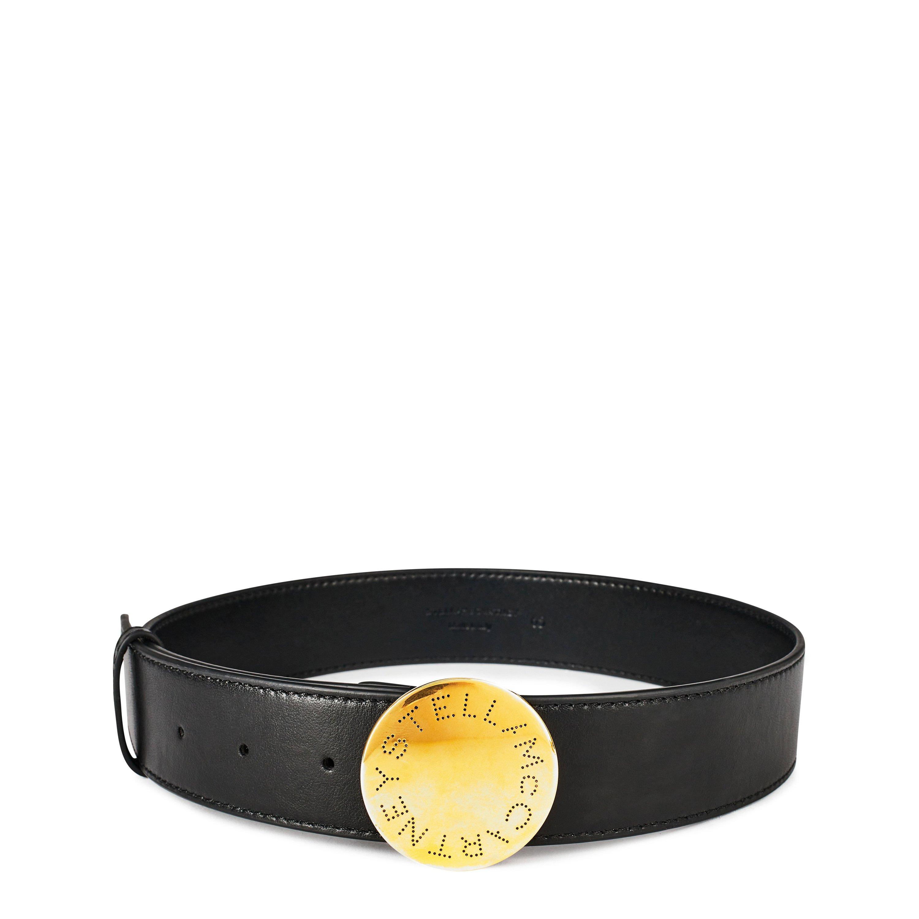 Add a designer touch to your basics with the Stella McCartney Logo Buckle Belt. Crafted from a faux-leather styling a solid block colour, this sleek silhouette is complete with a gold-toned pin buckle fastening to the front characterised with engraved Stella McCartney branding.