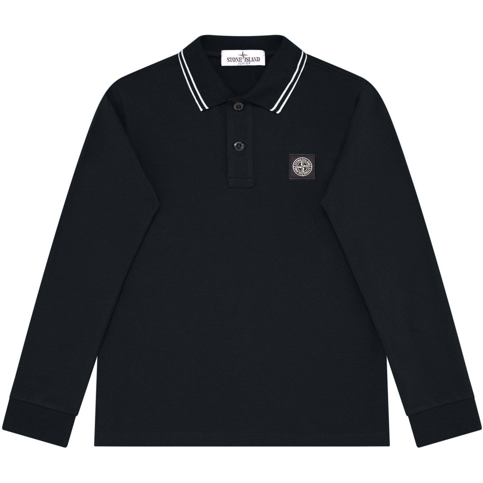 Stone Island Boys' Plain Cotton Patch Logo Long Sleeve Polo Shirt