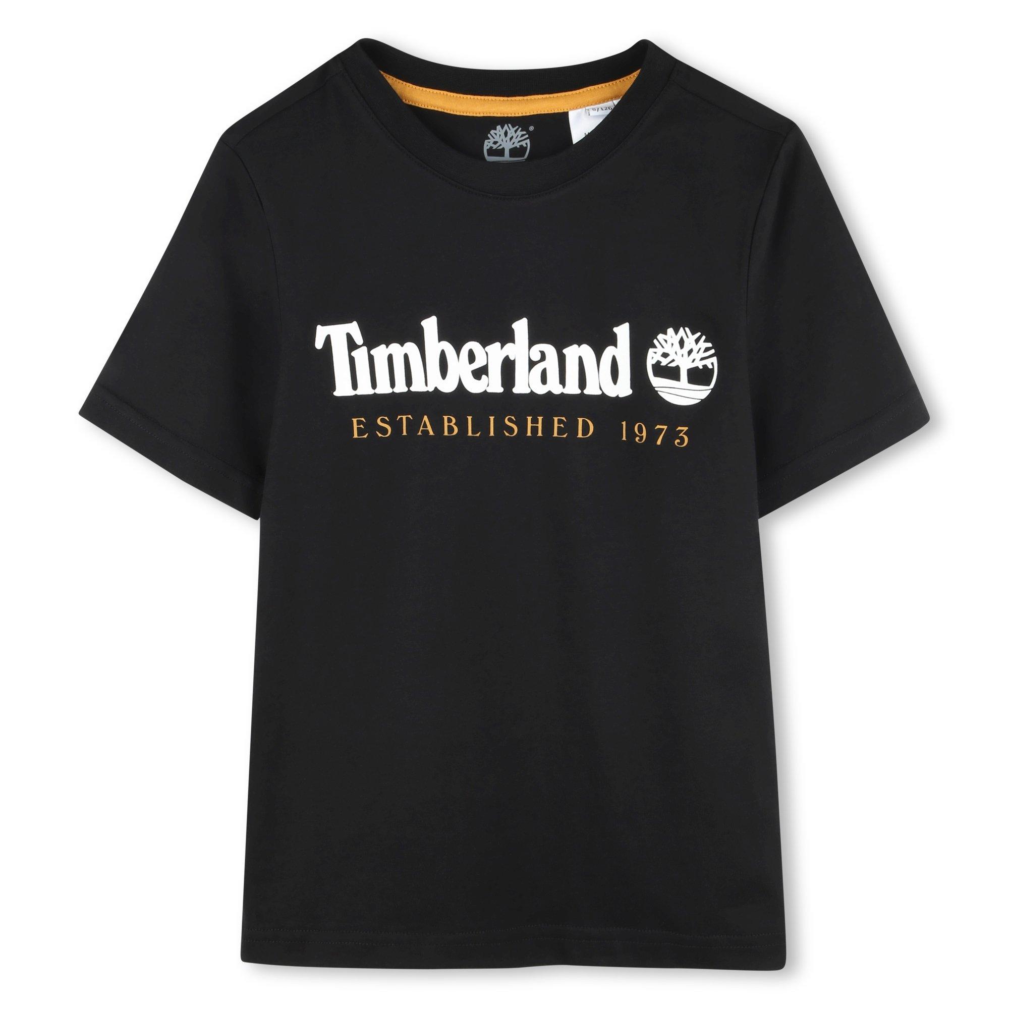 Elevate your young one's wardrobe with Timberland's Logo T-shirt. Crafted from 100% cotton offering a soft and comfortable feel for all-day wear. The regular fit and straight hem provide a classic appeal, while the crew neckline and short sleeves ensure breathability and ease of movement.