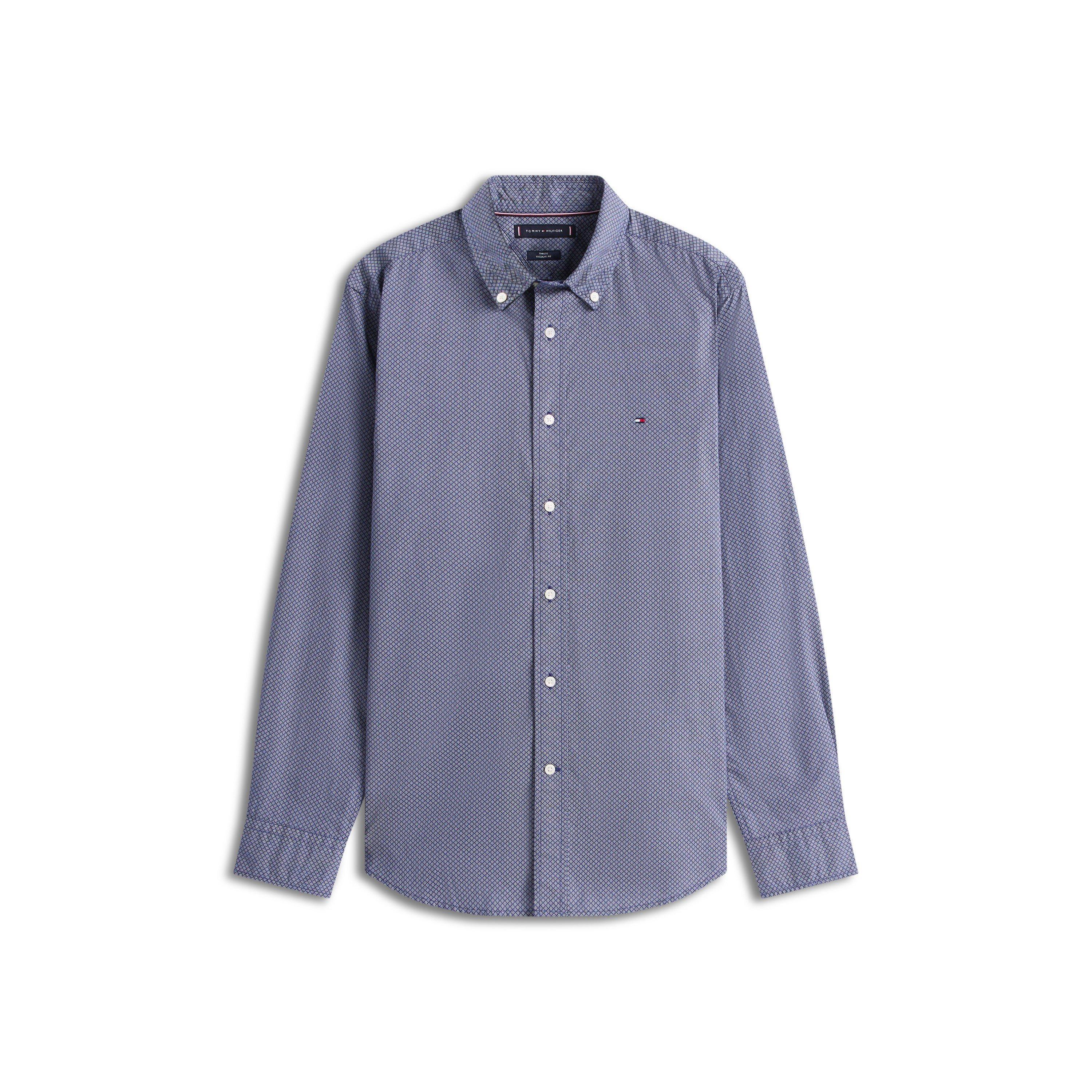Tommy Hilfiger's Long-Sleeve Poplin Print Patterned Shirt offers smart aesthetics and everyday comfort, featuring patterning within the brand's American fashion design language. The structured cut showcases graphic patterning while embodying the brand's classic American aesthetic.