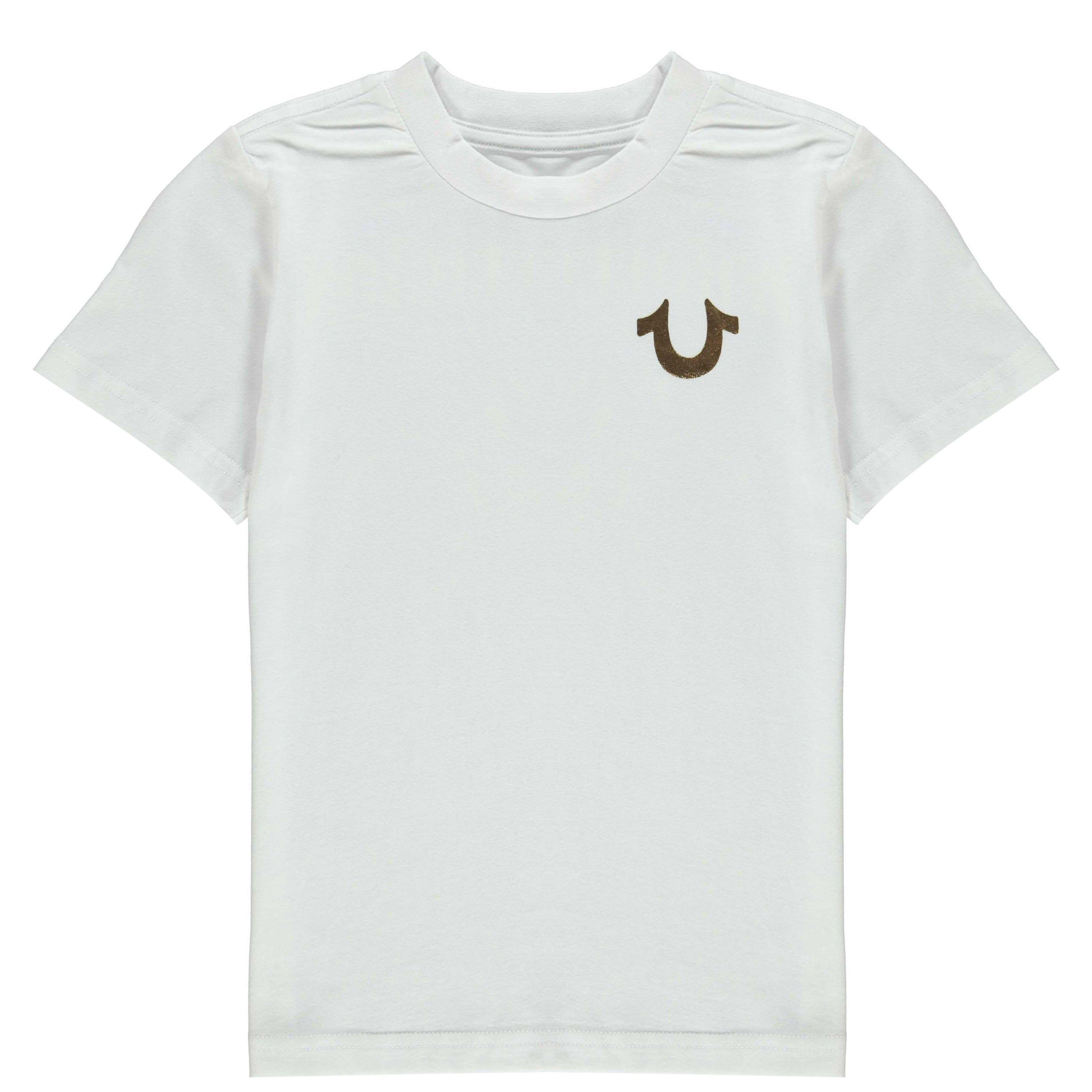 Upgrade a youngsters look with this on trend tee from True Religion. Adding a stylish twist to casual wear, the Horseshoe T Shirt has been crafted from 100% Cotton, featuring a crew neckline, short sleeves and solid colour throughout for a simple aesthetic. Finished with the brands iconic Horseshoe logo printed to the chest, the T Shirt is then designed with a branded graphic to the back for an urban look.