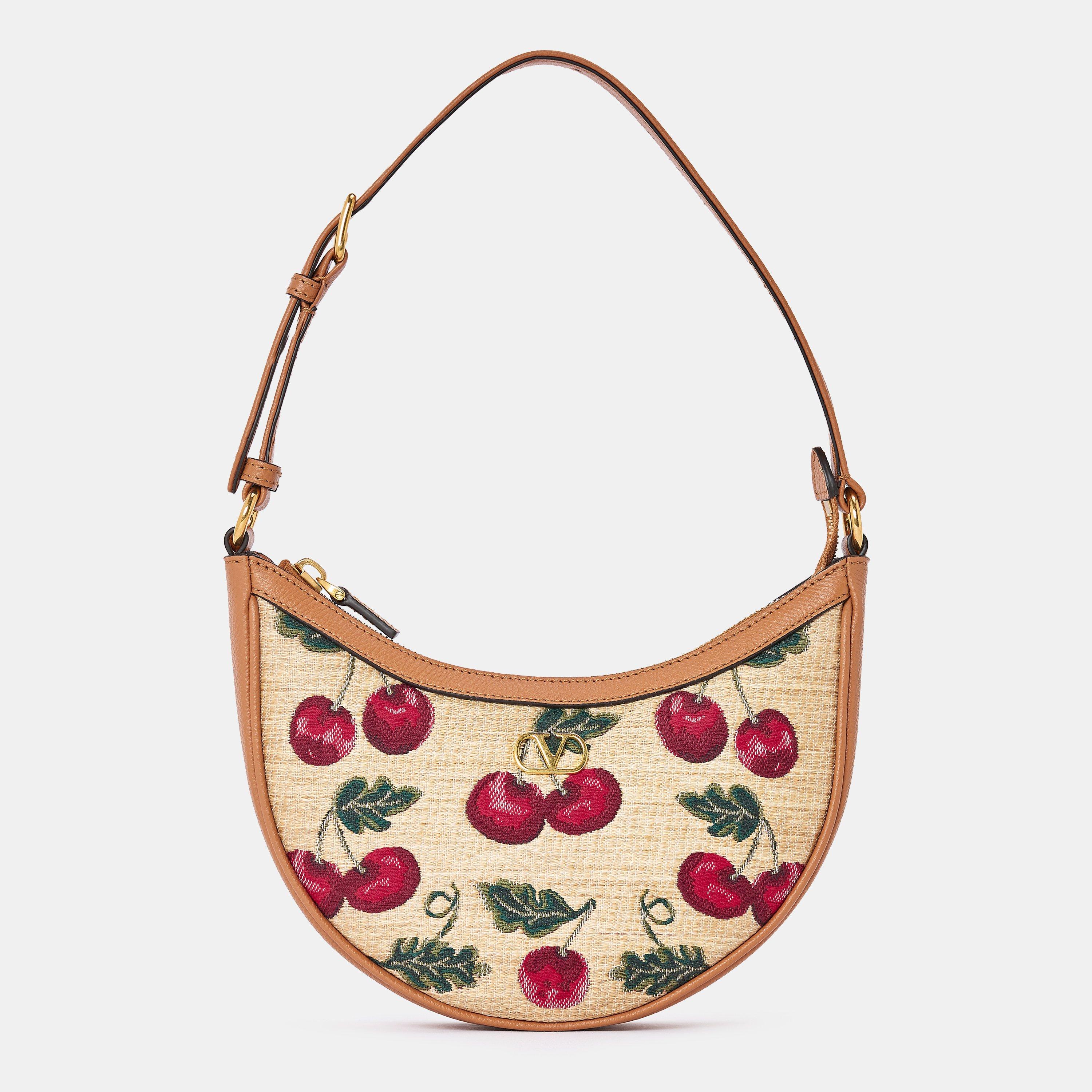 Valentino Garavani's Cherry Hobo Handbag unites curves with practical design. The slouchy shape features a spacious interior while maintaining the brand's style. This designer handbag offers both style and functionality.