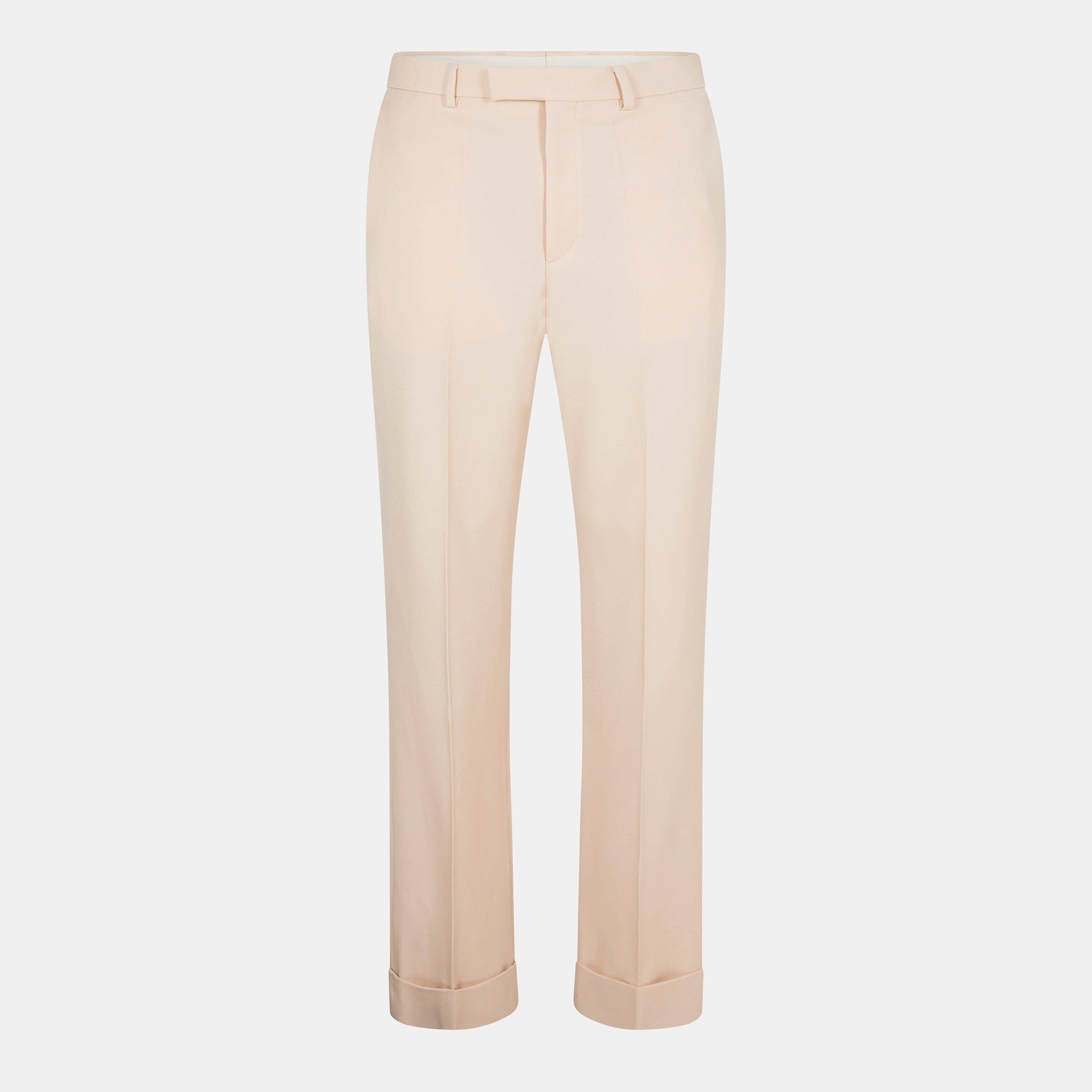 Valentino's Men's Straight Leg Trousers feature a classic tailored design. The clean-cut shape maintains a structured fit, offering classic style.