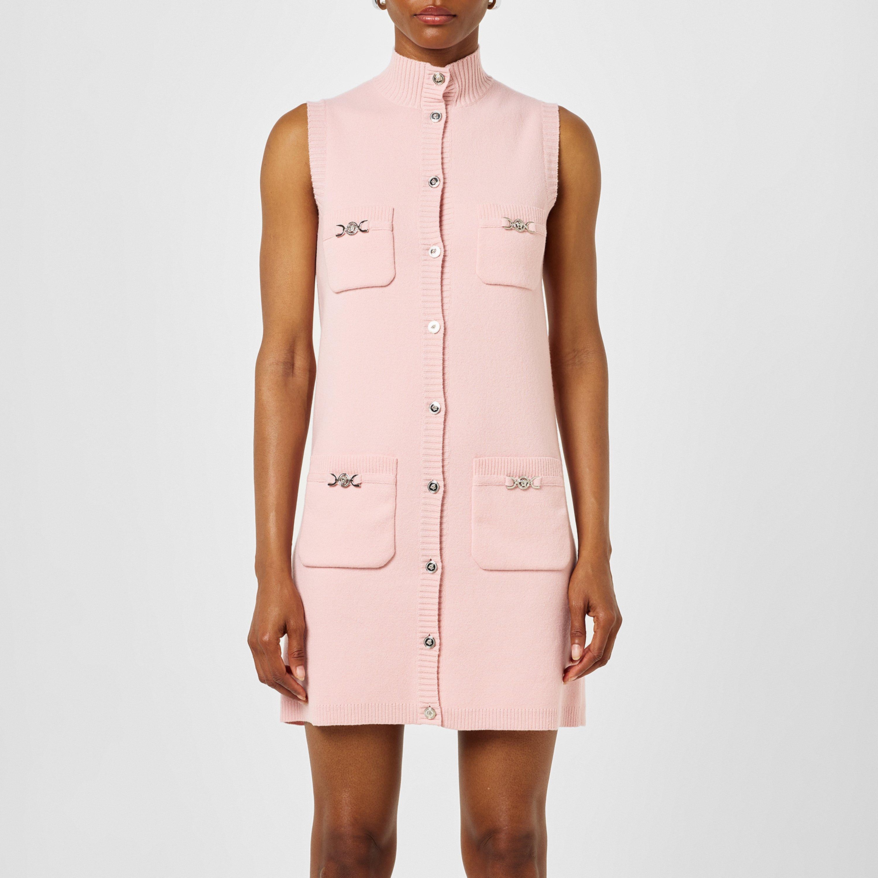 Command attention with the Versace Knit Medusa Mini Dress, a figure-hugging silhouette that blends iconic house codes with contemporary allure. Crafted from a luxurious stretch-knit fabric, this mini dress contours the body beautifully while offering comfort and structure. Perfect for evening events, upscale dinners, or nights out where making an impression is non-negotiable, this dress turns heads from every angle.