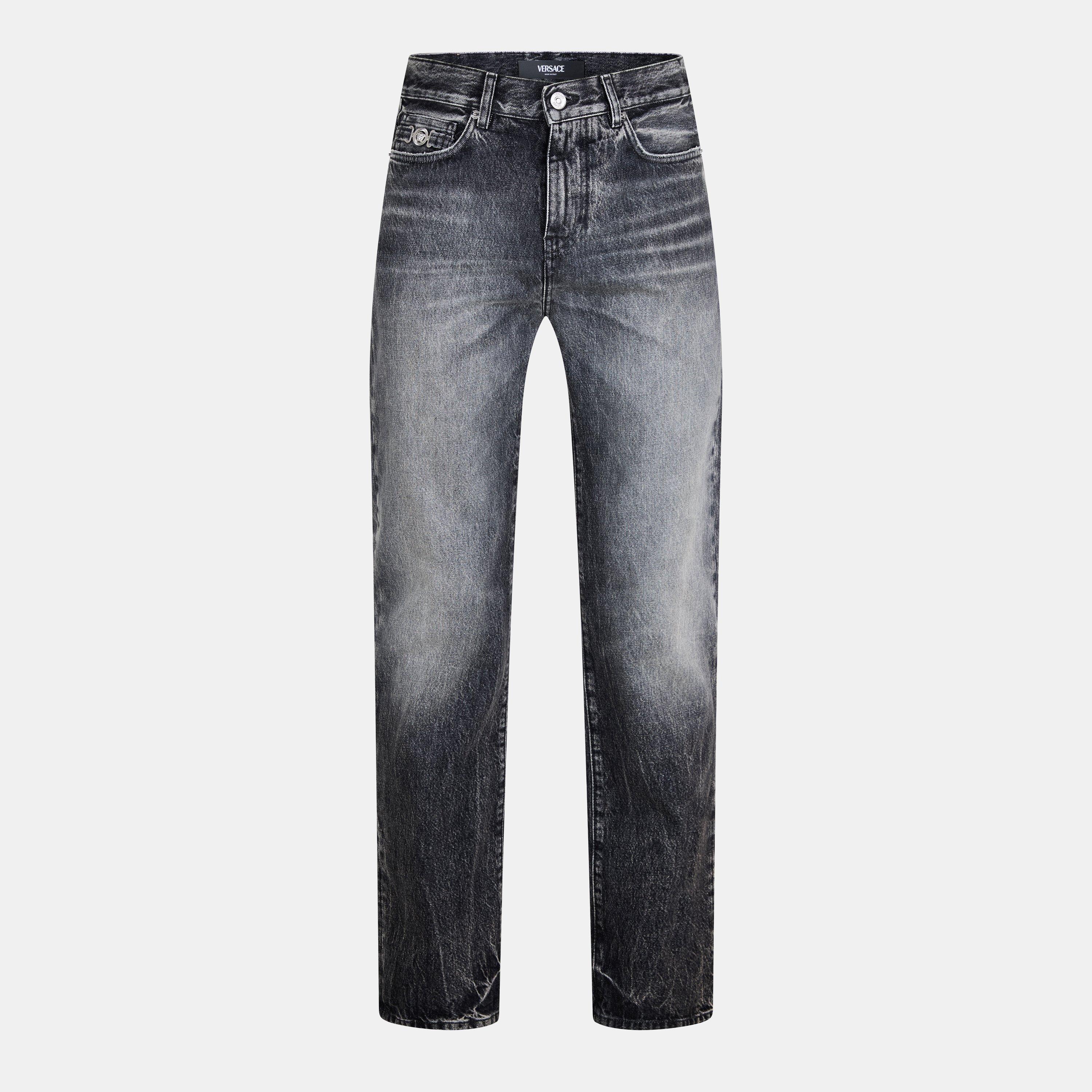 Versace's Slim Fit Jeans feature a streamlined design for a close, modern fit through the hip and thigh.