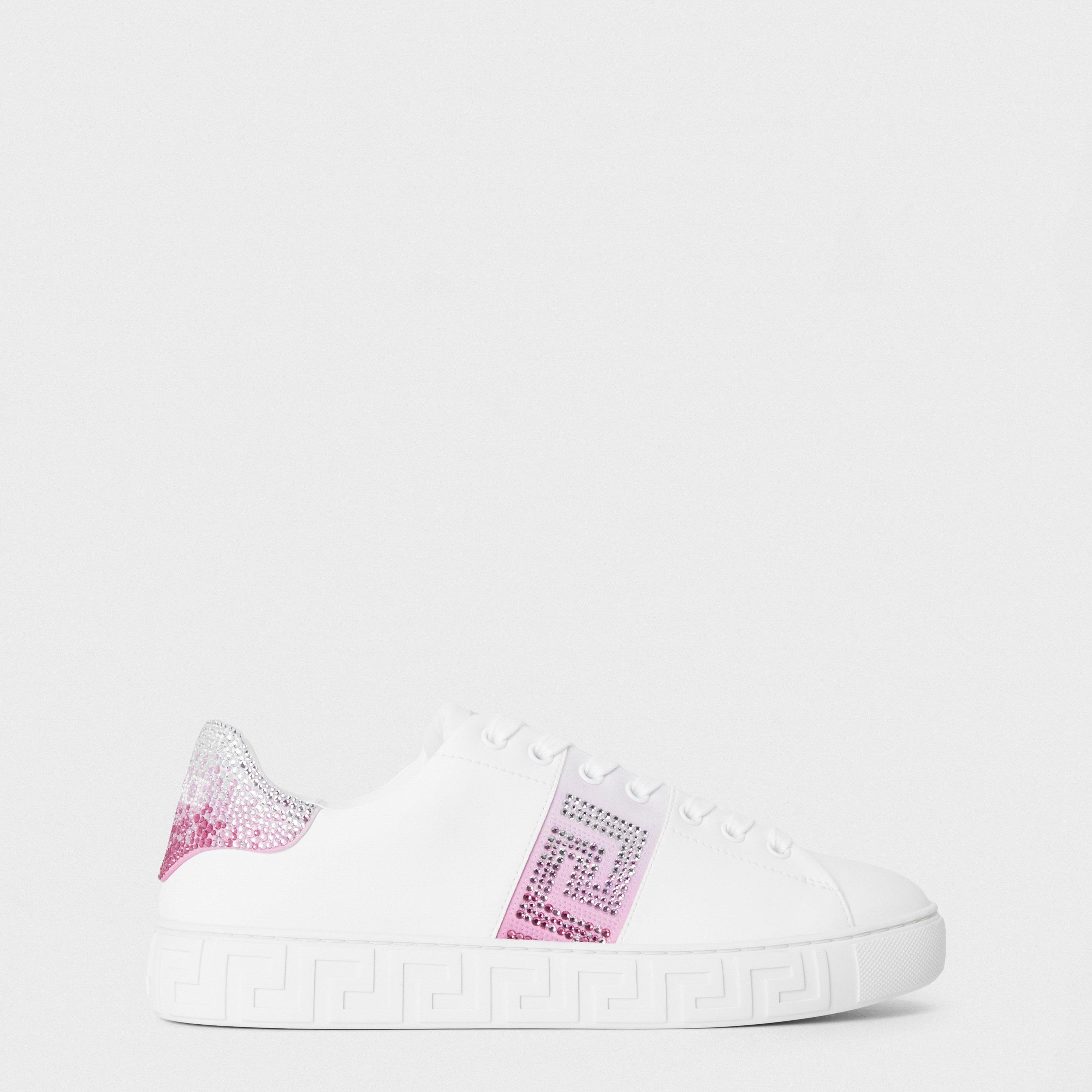 Versace's Logo Low-Top Trainers pair sleek minimalism with the brand's well-known bold aesthetic. These designer sneakers feature a streamlined shape with eye-catching logo detailing set against a low-profile design.
