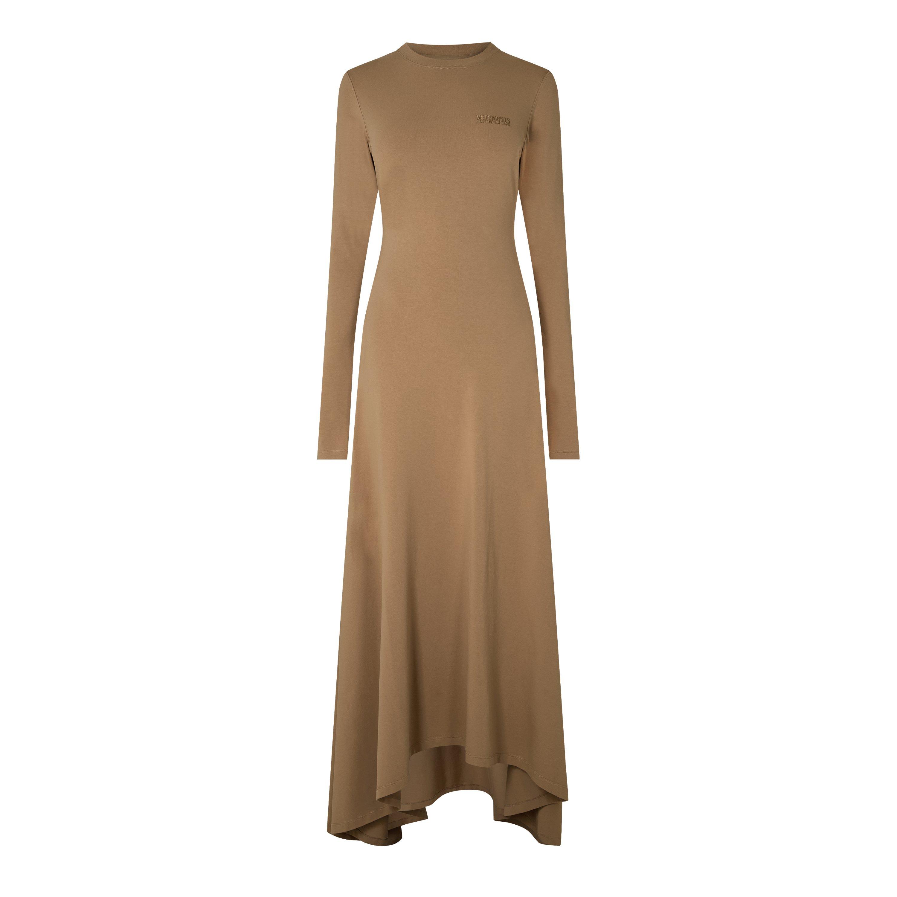 VETEMENTS' Women's Maxi T-Shirt Dress features an oversized, elongated shape. This minimalist design offers styling flexibility through its extended proportions and relaxed fit.