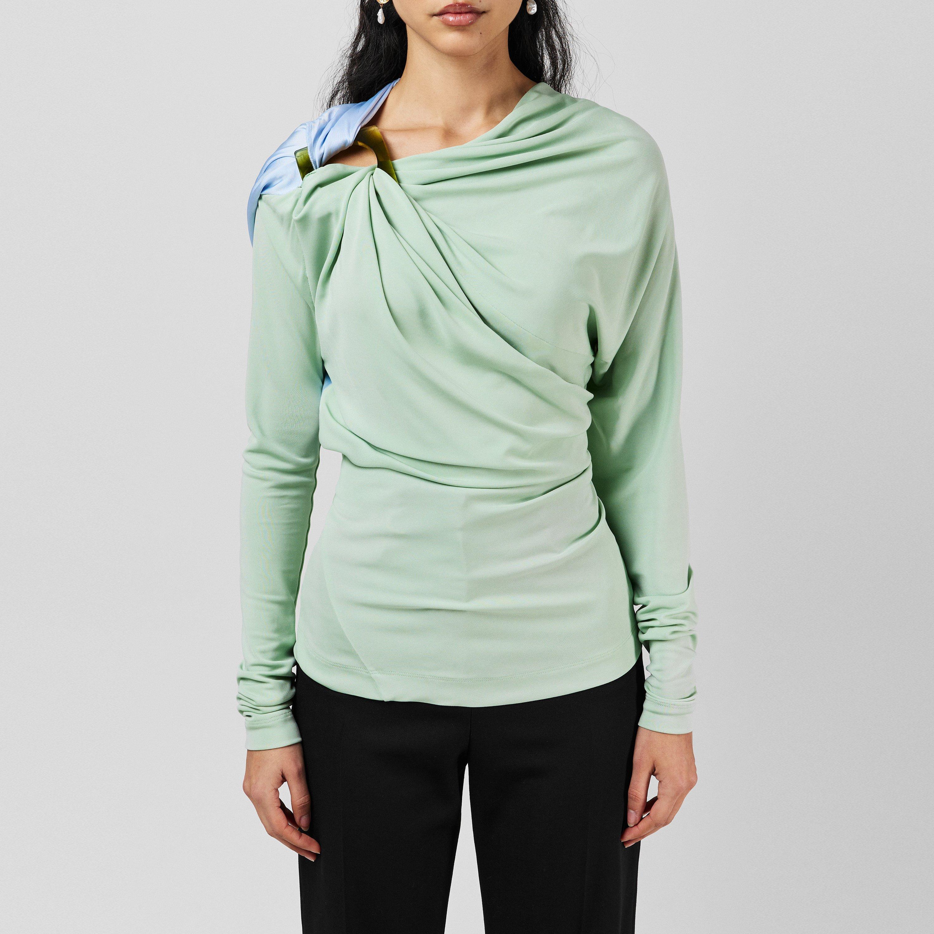 Add a standout piece to your wardrobe with Victoria Beckham's Drape Long Sleeve Top, a brand synonymous with minimalist sophistication, luxury, and a refined aesthetic. Designed with an asymmetric neckline and hem, exuding a stylish finish. From upscale dinners to special occasions, this top is the perfect choice.