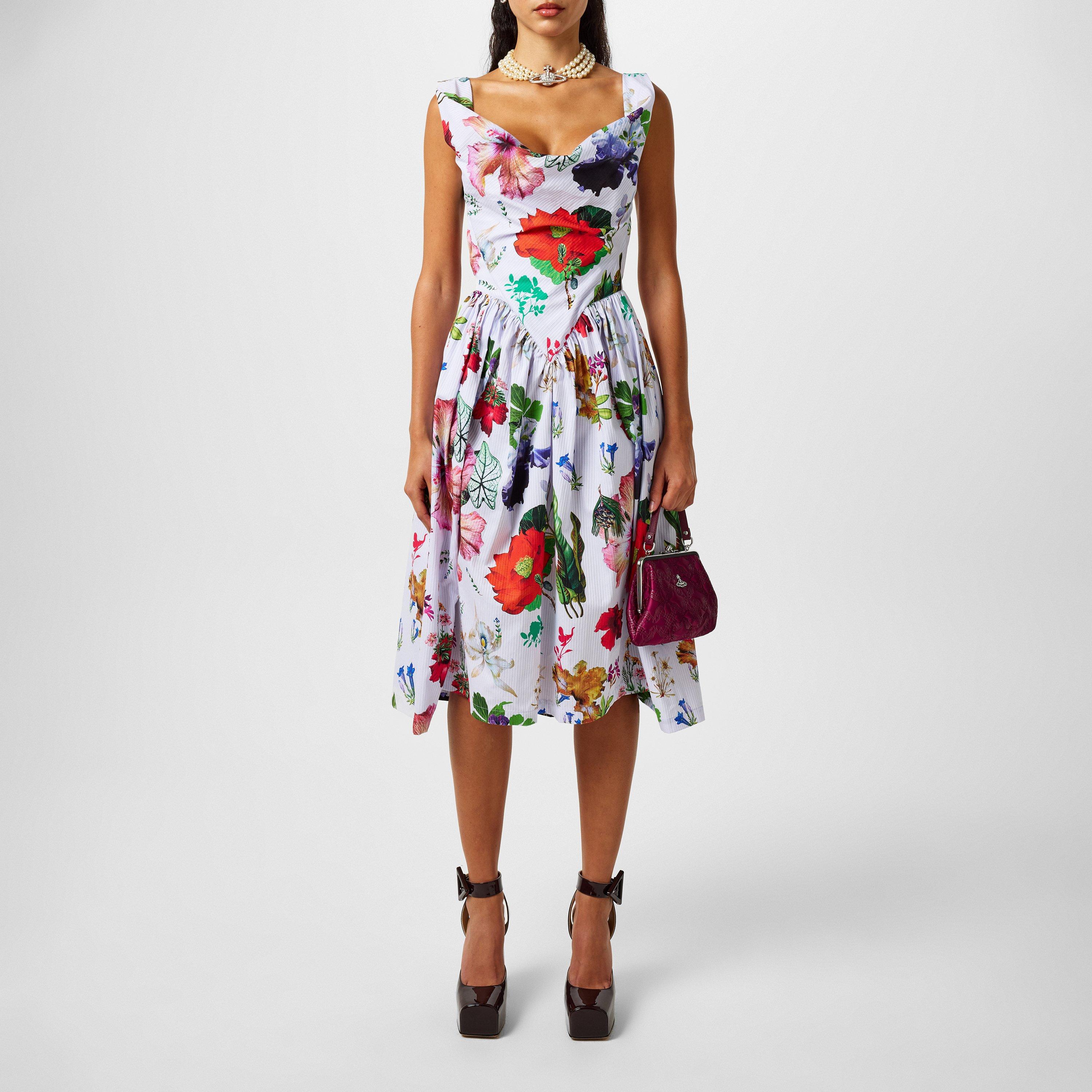 Fusing familiar with the future by infusing their pieces with artistic influences and contemporary aesthetics, Vivienne Westwood boasts a distinguished repertoire, expertly expressed in this Floral Sunday Dress. Inspired by its debut in Spring-Summer 1997 'Vive La Bagatelle' collection, this Sunday Dress incorporates statement archival elements with refreshed details for a striking silhouette. With its corset-inspired bodice which sculpts your silhouette, this dress is perfect for sophisticated soirees, garden parties, and formal events.