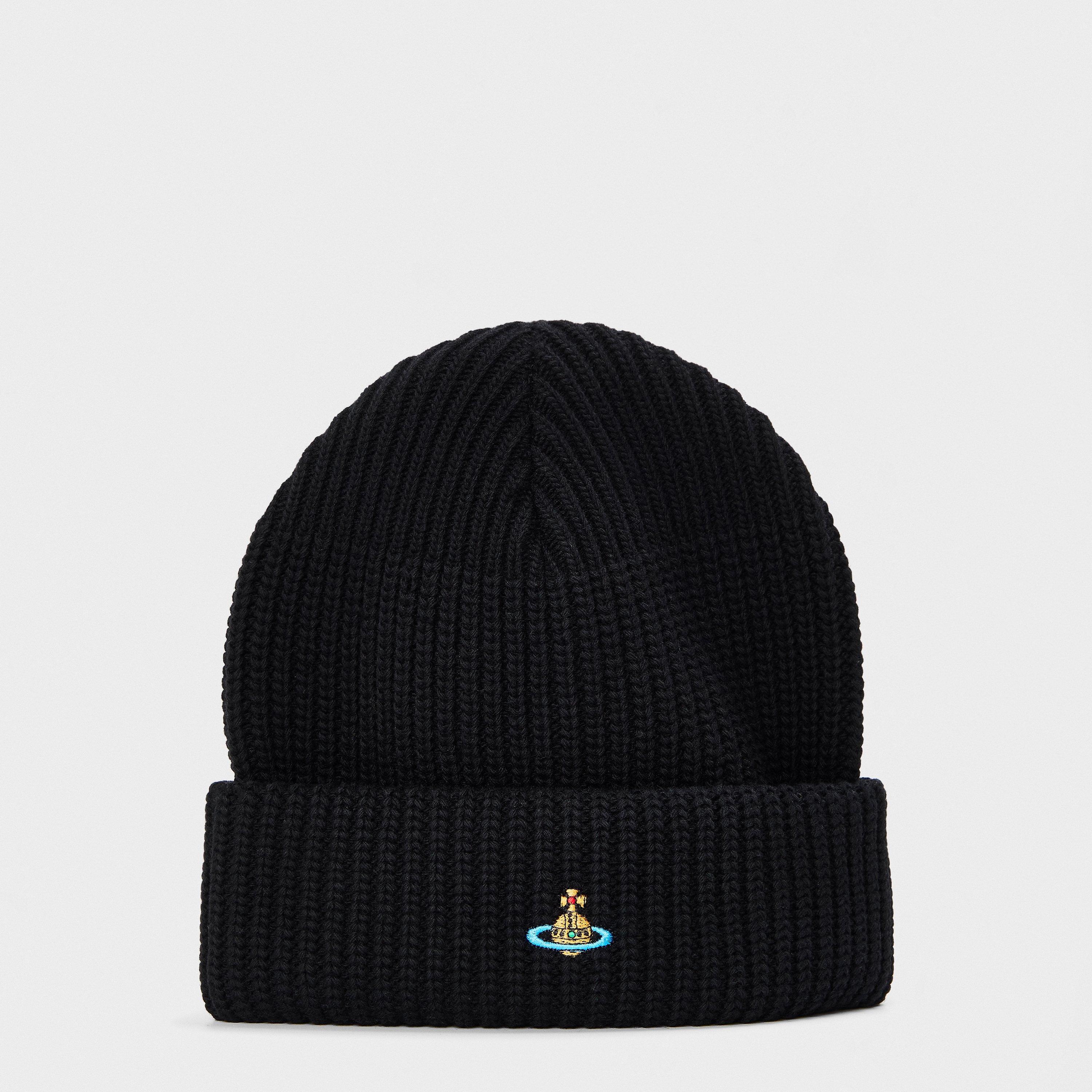 Vivienne Westwood's Viv Sport Beanie for men offers British designer quality with functional warmth. This style features the Westwood orb logo while providing reliable coverage during colder days, making it an essential hat for winter wear.