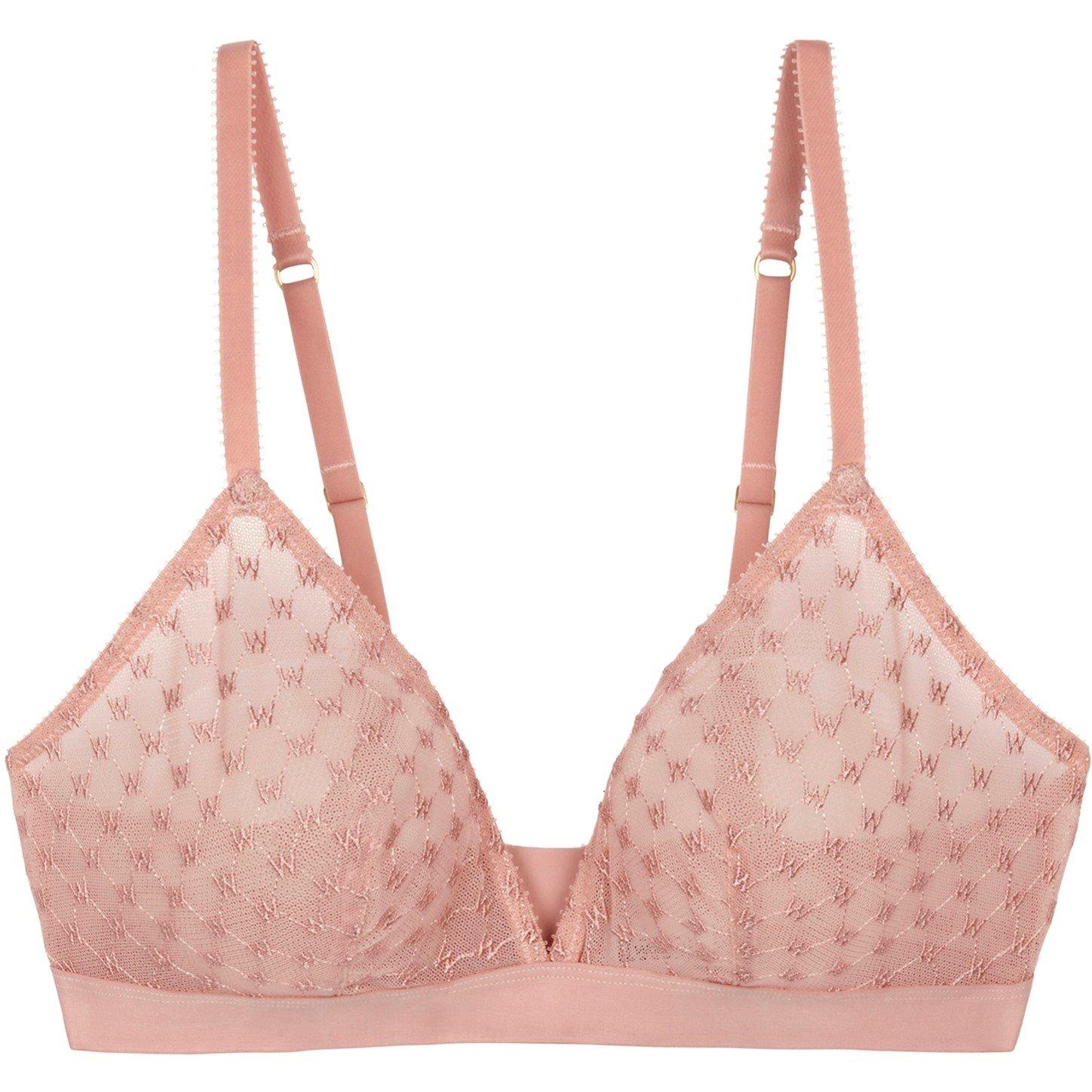 Wolford's Sheer Lace Non-Wired Triangle Bralette features W logo embroidery on sheer lace mesh. This wire-free design offers light support and a beautiful appearance, providing both style and comfort in a thoughtful design.
