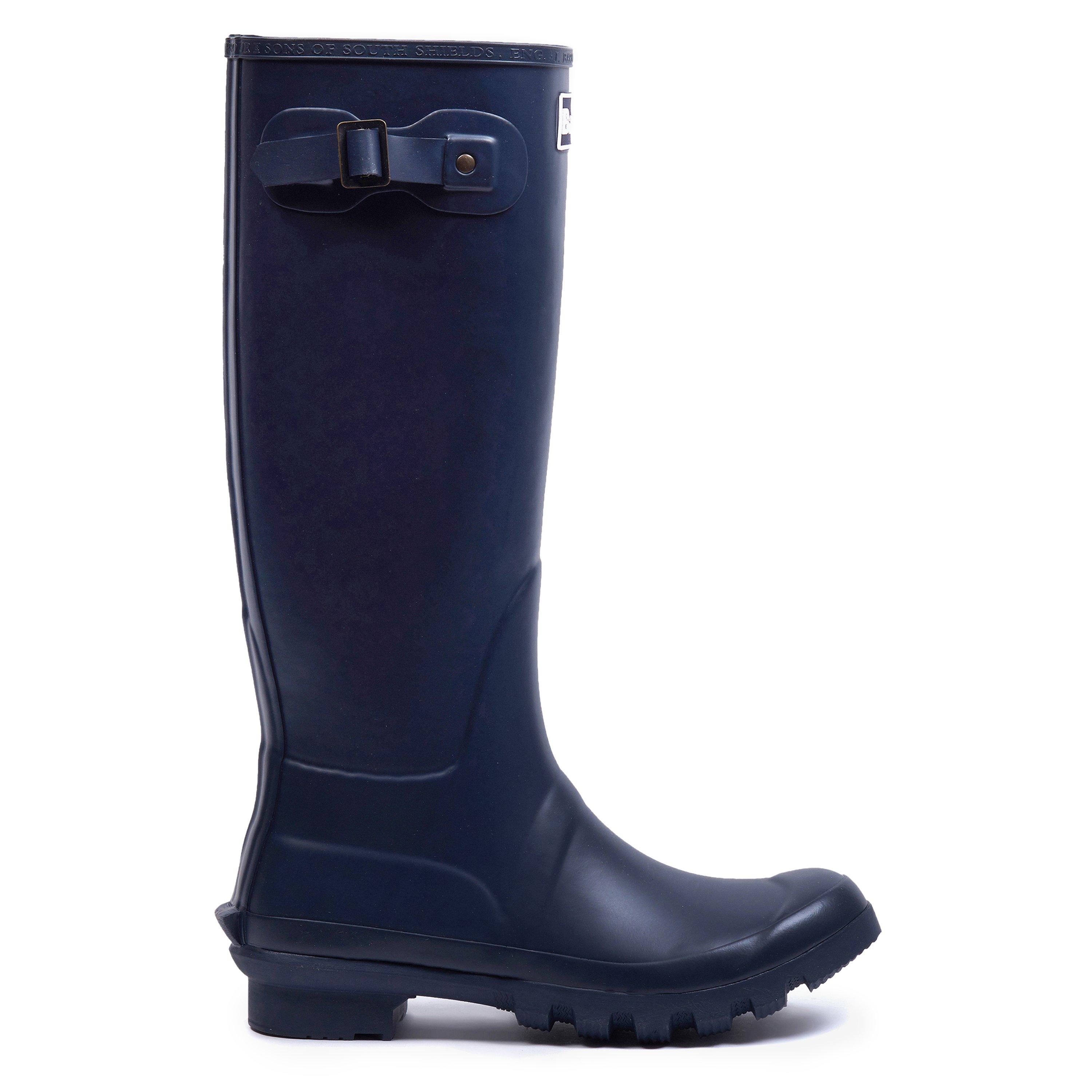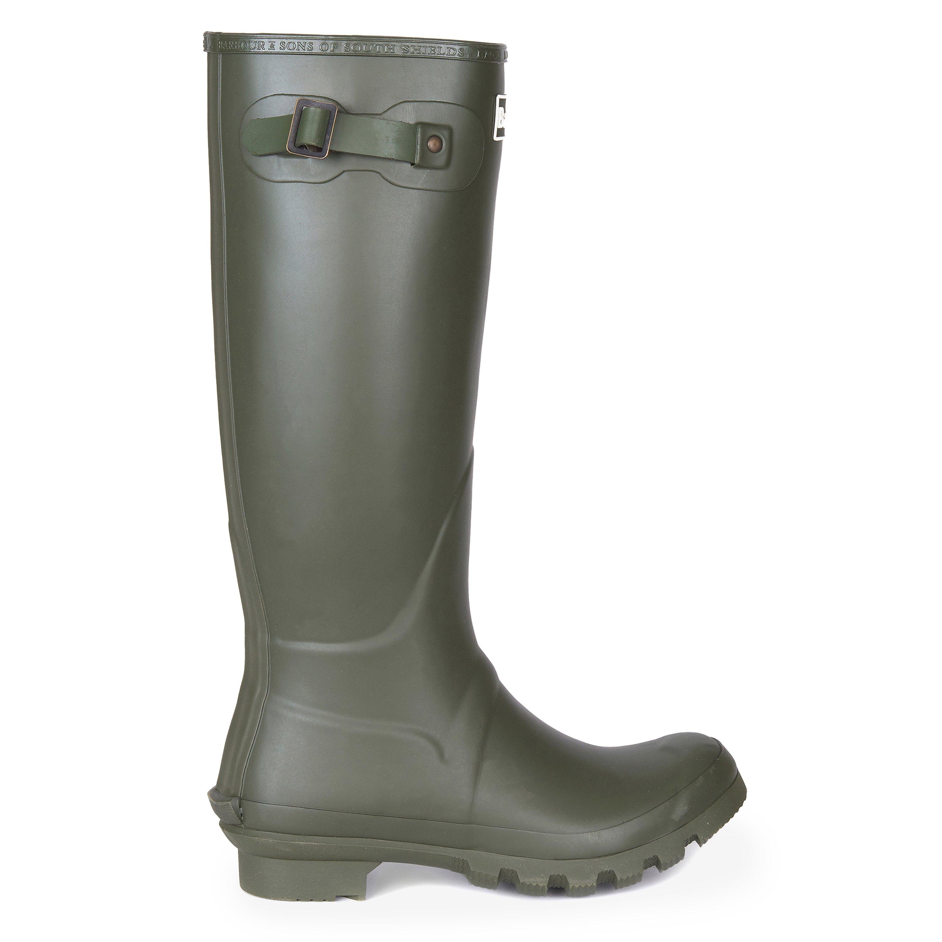Built for the British elements, these Barbour wellington boots deliver trusted performance with classic style. The Bede boots feature a durable rubber construction with a practical adjustable side buckle for a secure fit. The chunky cleated sole provides reliable grip on challenging terrain, while the branded detailing adds a signature touch to this time-tested design.