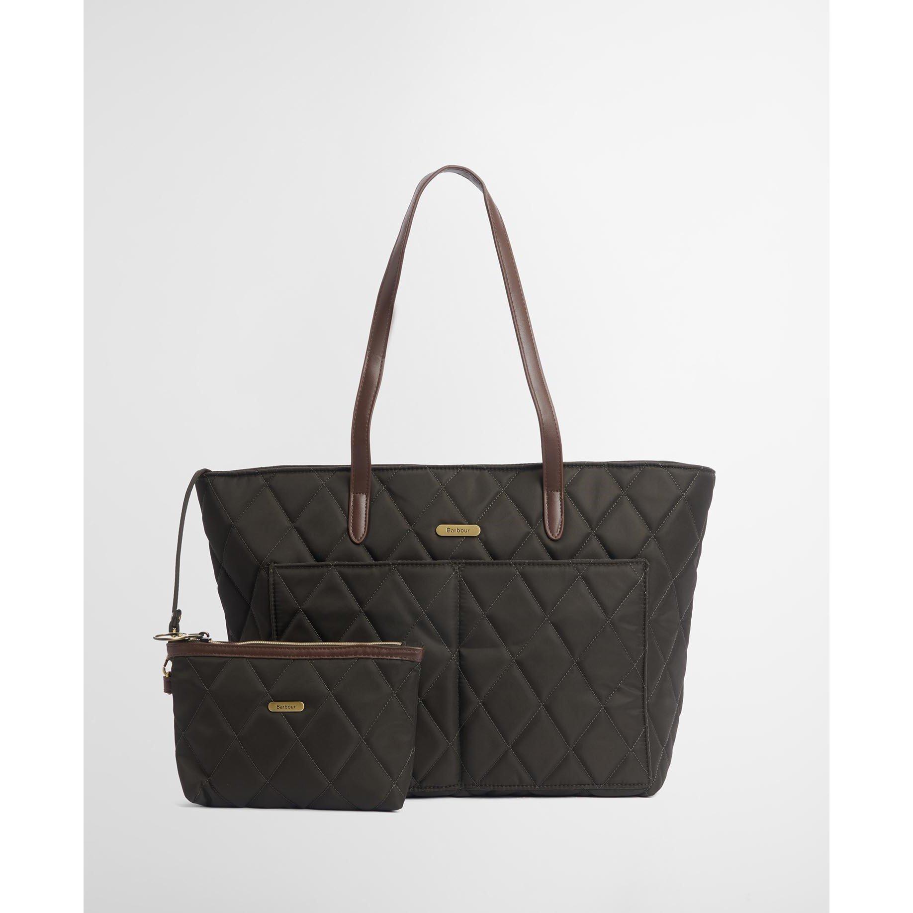 Distinguished by its diamond-quilted pattern, this Barbour tote bag combines practical design with heritage style. The spacious interior offers ample room for daily essentials, while the durable nylon construction ensures lasting wear. Gold-toned hardware adds a luxurious touch to the understated design, complemented by twin carry handles and a secure top zip fastening.